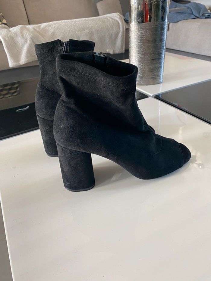Bottines ouvertes devant Talon large Matière ressemblant au nubuk #bottines #nubuk #pimkie #femme #devantouvert #noir #chantalmatejachaussures38 #chantalmatejakim #chantalmateha2024