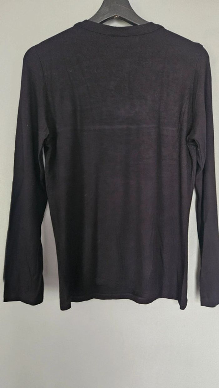 Basique indispensable à la coupe ajustée, ce t-shirt noir Influx à manches longues est parfait en superposition ou porté seul. Léger et doux, il est composé de 96 % viscose et 4 % élasthanne pour un confort optimal. Taille indiquée : 50/52 Convient mieux à : 44/46 (voir mesures) Mesures à plat : Épaules : 38 cm Aisselles : 49 cm Longueur : 60,5 cm État : Très bon état Matière : Fluide, extensible et agréable à porter. #vanessavadfemme44 #vanessavadfemmegrandestailles #noir #tshirt #mancheslongues #influx #basique #viscose #taille44 #taille46 #vetementfemme