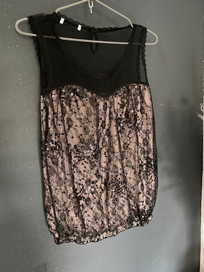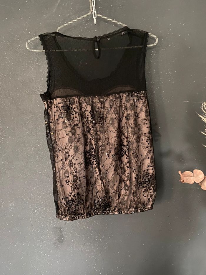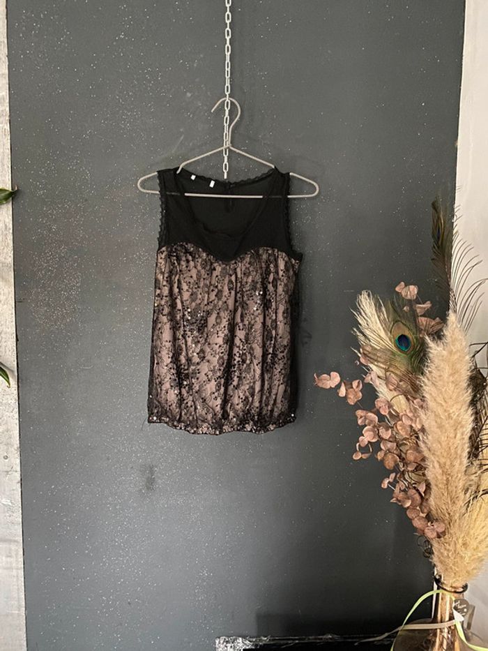 Top dentelle résille sequins et plumetis doublé 34/36 - photo numéro 1