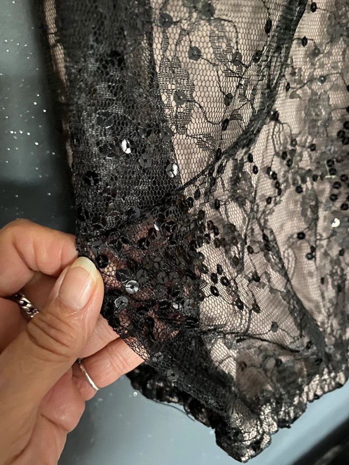 Top dentelle résille sequins et plumetis doublé 34/36 - photo numéro 6