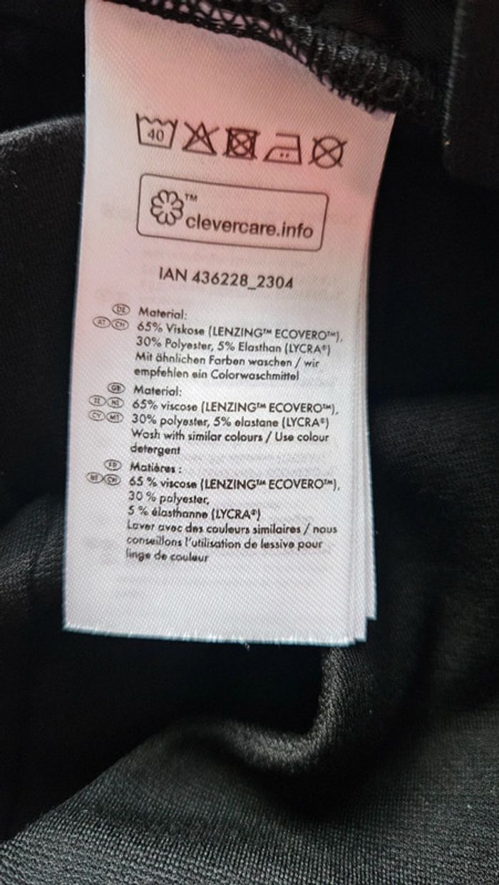 Confortable et élégant, ce pantacourt noir de la marque Esmara est parfait pour une tenue du quotidien ou une allure plus habillée. Taille 46/48 , il est doté d'une taille élastiquée et de poches pratiques. Sa matière fluide et extensible (65 % viscose Lenzing Ecovero, 30 % polyester, 5 % élasthanne) offre une grande liberté de mouvement. Mesures : Largeur taille à plat : 40 cm Longueur totale : 89 cm Entrejambe : 58 cm Idéal avec un haut fluide ou une veste. #vanessavadfemmegrandestailles #pantalonnoir #grandestaille #esmara #taille46 #modefemme #confort #basic #chicgrandestailles