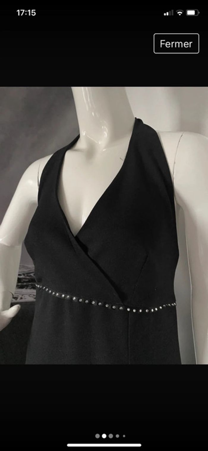 Robe longue à nouer derrière le cou Rangée de strass sous la poitrine 2 fentes devant et 2 fentes derrière Marque italienne que je n’arrive pas à lire Taille vintage 42 convient à 38 voir mensurations en photo Couture sous la poitrine de 39 cms à plat Derrière niveau bas du dos 40 cms à plat Longueur en partant de sous la poitrine 95 cms Polyester Fabrication en Italie #robenoire #robedesoirée #robedefête #robechic #tenuedefête #chantalmatejatenuedefete #chantalmatejarobes38 #chantalmatejaval #chantalmateja2024