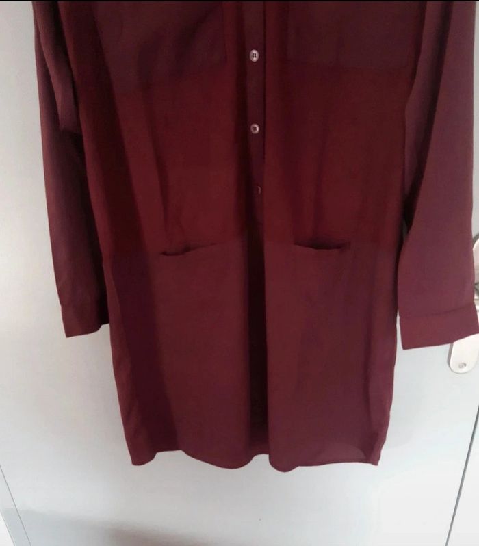 Élégante chemise longue couleur prune, effet bi-matière (polyester et viscose), signée 3 Suisses Collection. Coupe droite fluide, à porter ouverte ou fermée selon l’envie. Détails pratiques : Manches longues avec pattes de boutonnage pour les retrousser Quatre poches plaquées devant Fermeture boutonnée Longueur env. 90 cm Taille indiquée : 40 (convient à un 38/40 selon effet souhaité). À noter : la couleur est plus profonde en vrai que sur les photos. #vanessavadfemme40 #chemiseprune #chemiselongue #3suissescollection #modefemme #lookautomne #vintedfemme #bimatiere #chemiseoversize