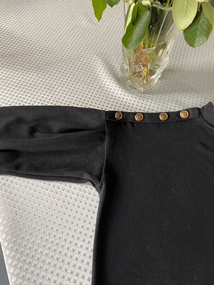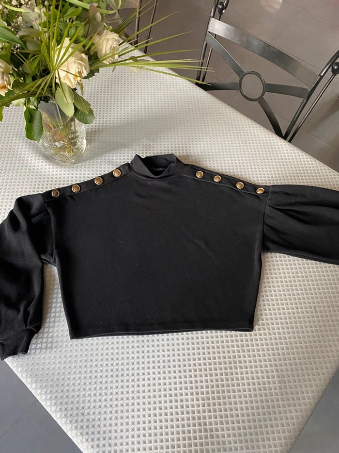 Top sweat court noir avec boutons dorés Manches larges épaules tombantes Hauteur 46 en partant de la base du cou 52 au niveau des aisselles Il y a qq petits poils provenant d’autres vêtements (pas d’animaux) Plus d’étiquette pour la matière qui est assez épaisse pour automne hiver #bershka #topcourt #swearcourt #pullcourt #mancheslarges #chantalmatejapullsfemme #chantalmatejahauts36 #chantalmatejakim #chantalmateja2024
