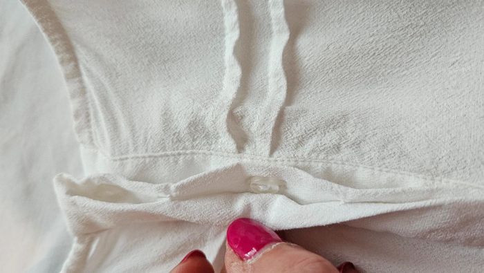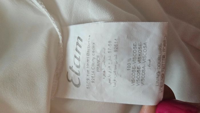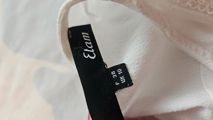 Robe fluide Etam, blanche, taille 38. Coupe sans manches, délicats plis aux épaules, broderies florales ton sur ton à l'avant. Fermeture zippée discrète sur le côté + bouton au dos. Jupe froncée avec joli tombé. Doublée sur le bas avec jupon 100% polyester. Composition : 100% viscose. Dimensions : aisselles 39 cm – longueur 84 cm. Note : micro-tâche quasi invisible (cf. photo zoom), mais je préfère le signaler. Idéale pour une cérémonie, un baptême ou une occasion estivale. #vanessavadfemme38 #etam #robeetam #blanche #robeété #chic #taille38 #uk10 #femme #robefluide #lookromantique #cérémonie