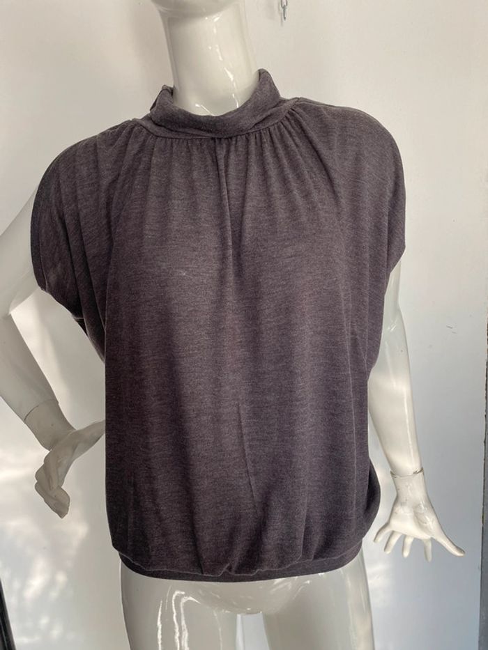 Haut loose blousant 50% viscose 50% polyester Petit col roulé Emmanchures chauve souris #hautloose #pilkie #chauvesouris #gris #vintage #viscose #polyester #chantalmatejahauts36 #chantalmatejamalo #chantalmateja2024