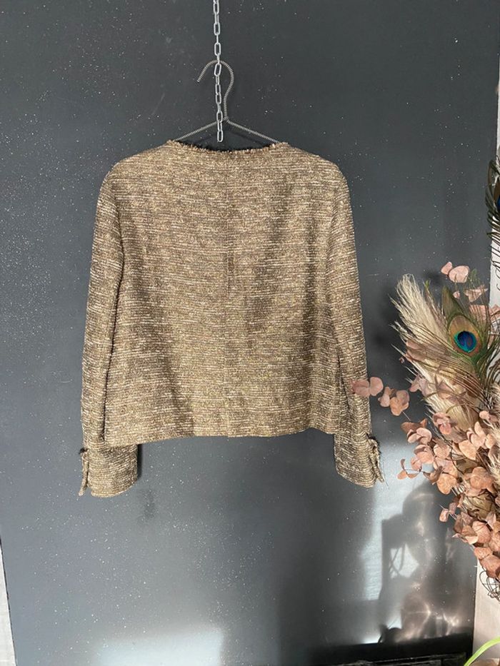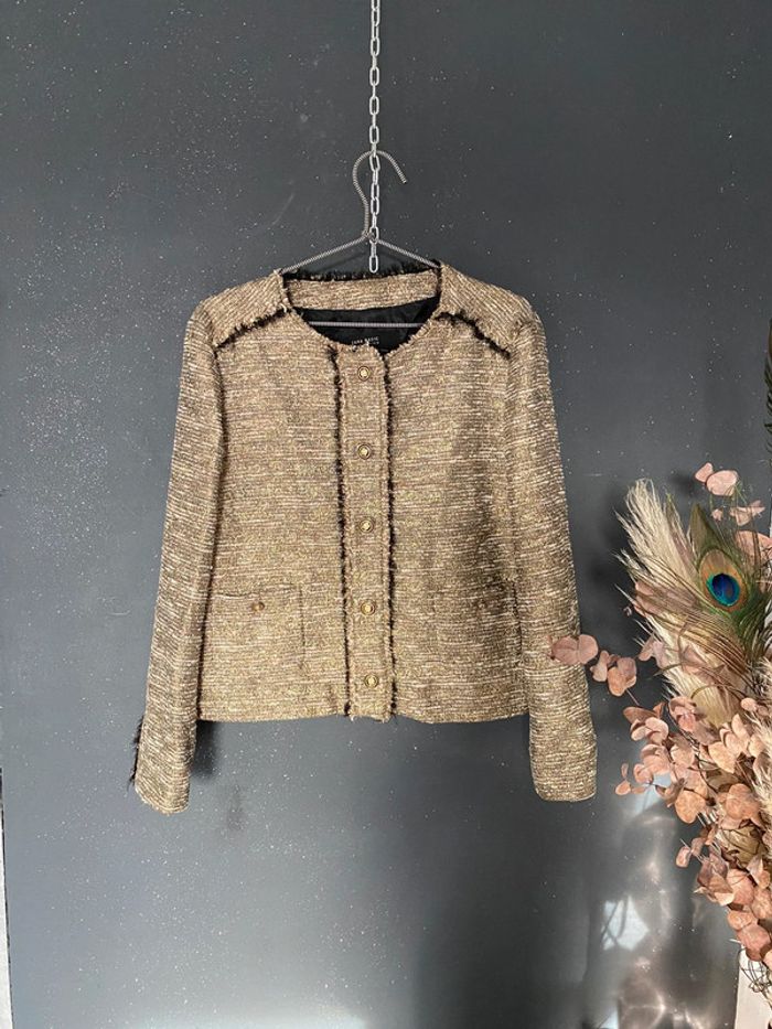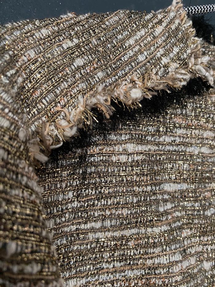 Petites franges écru noir doré aux épaules et patte de boutonnage