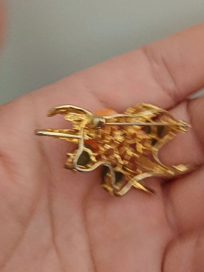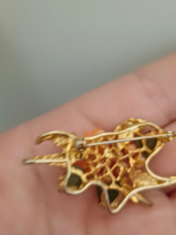 Broche vintage fleurs de corail et feuilles jad - photo numéro 4