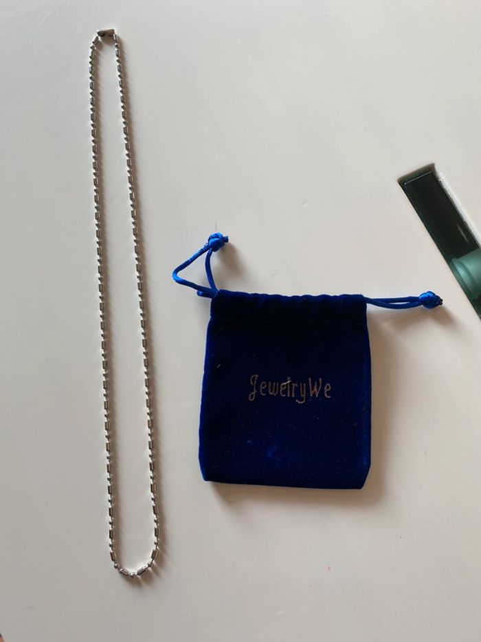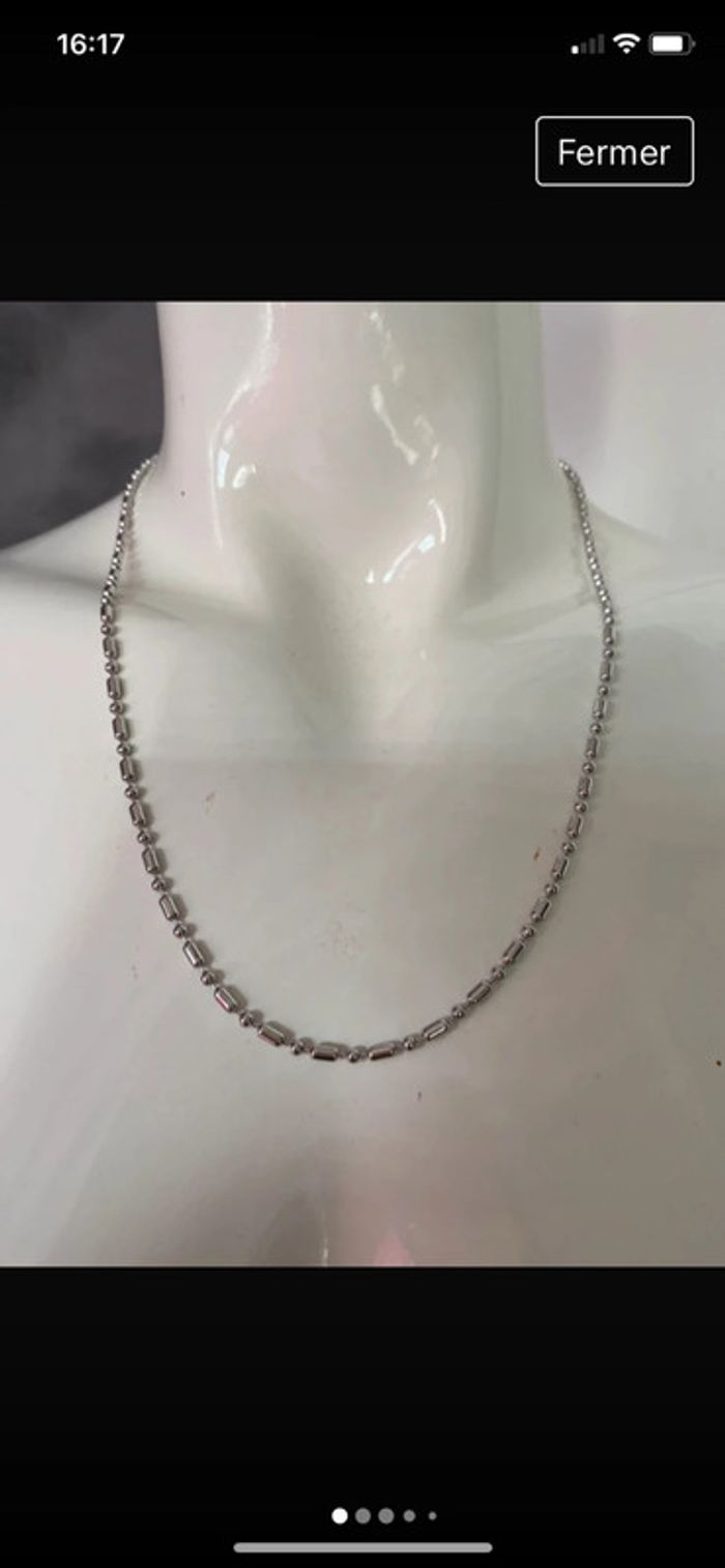 Chaîne fantaisie 55 cms N’est pas en argent Acier inoxydable je pense Pour la fermeture ce n’est pas un anneau il faut rentrer la boule qui est à l’extrémité #chaine #homme #jewelrywe #mixte #chantalmatejabijoux #chantalmatejagreg #chantalmateja2024