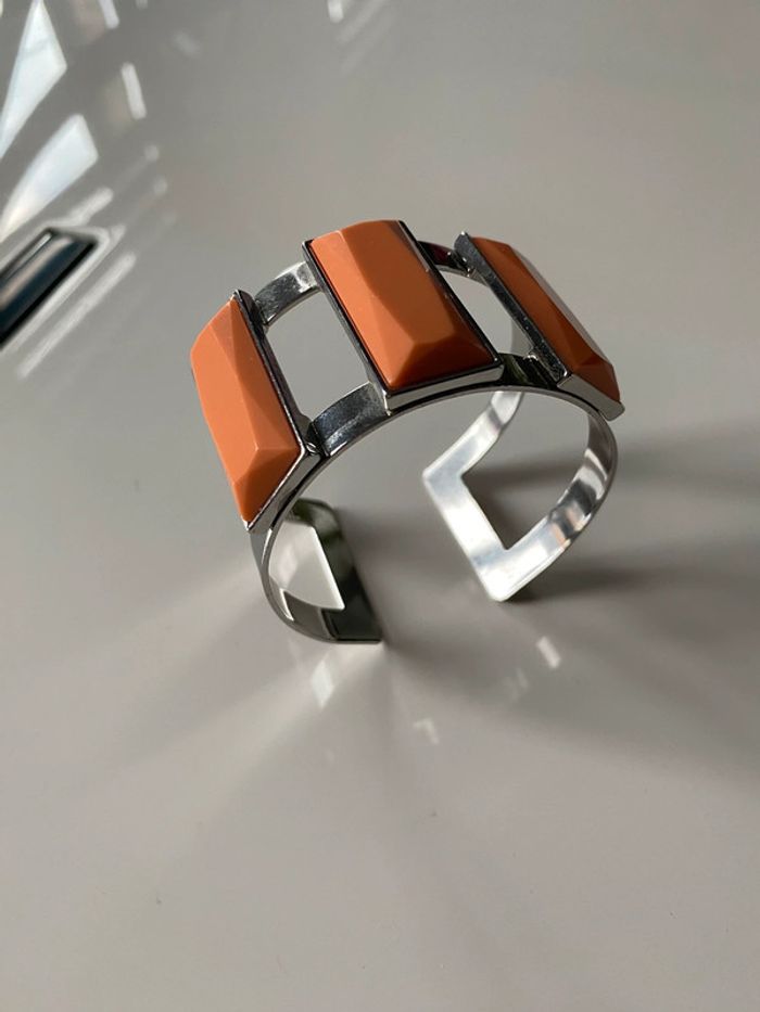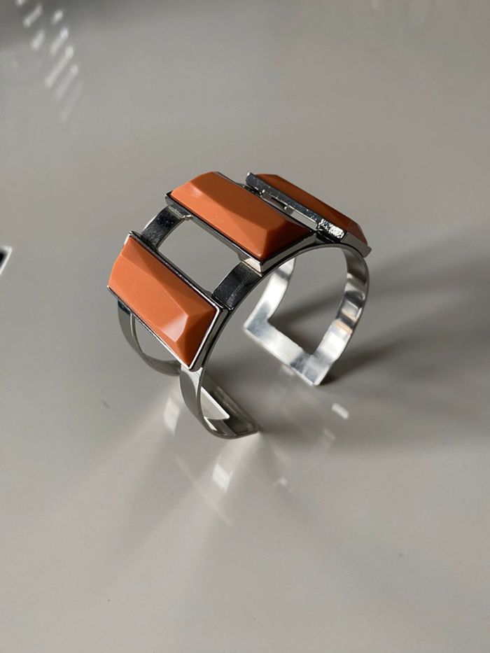 Bracelet acier inoxydable et rectangles couleur corail Dans un tiroir depuis longtemps jamais porté #braceletmanchette #vintage #corail #neuf #nonporté #boutique #chantalmatejabijoux #chantalmatejachame #chantalmateja2024