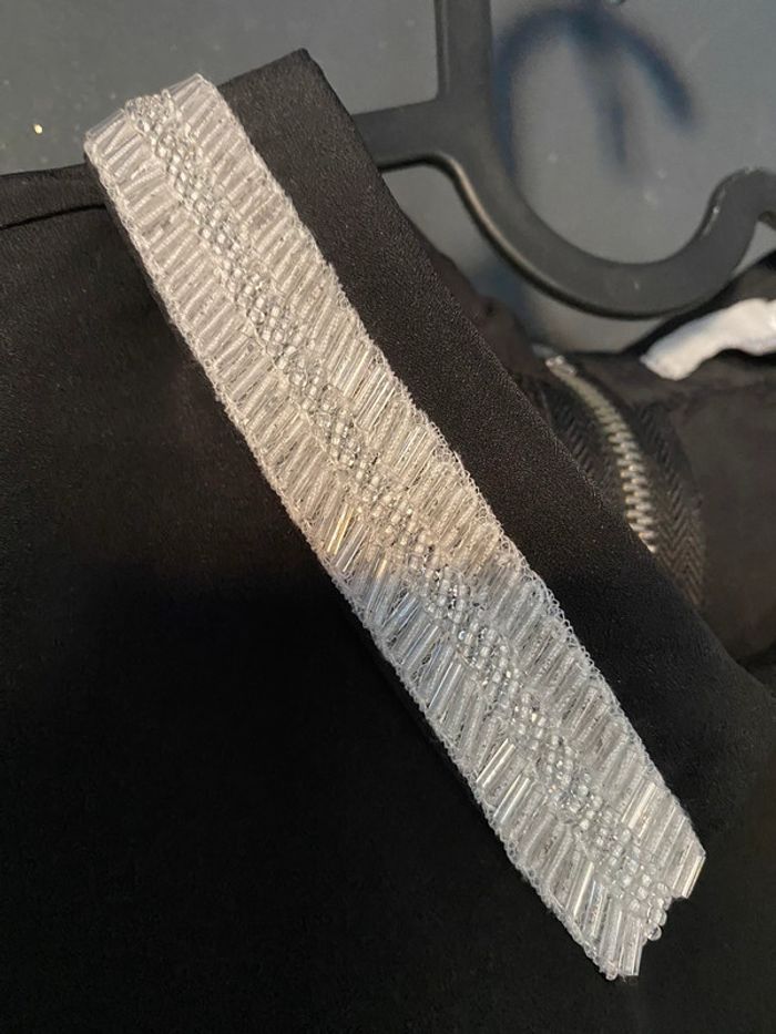 Blouse noire col bijoux Fermeture éclair derrière Le col est fait de tubes transparents sur fond argenté #blouse #colbijoux #chic #raffiné #etam #polyester #chantalmatejahauts36 #chantalmatejamalo #chantalmateja2024