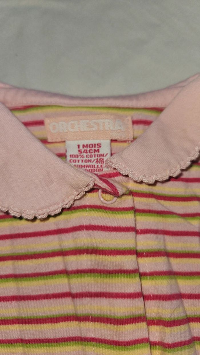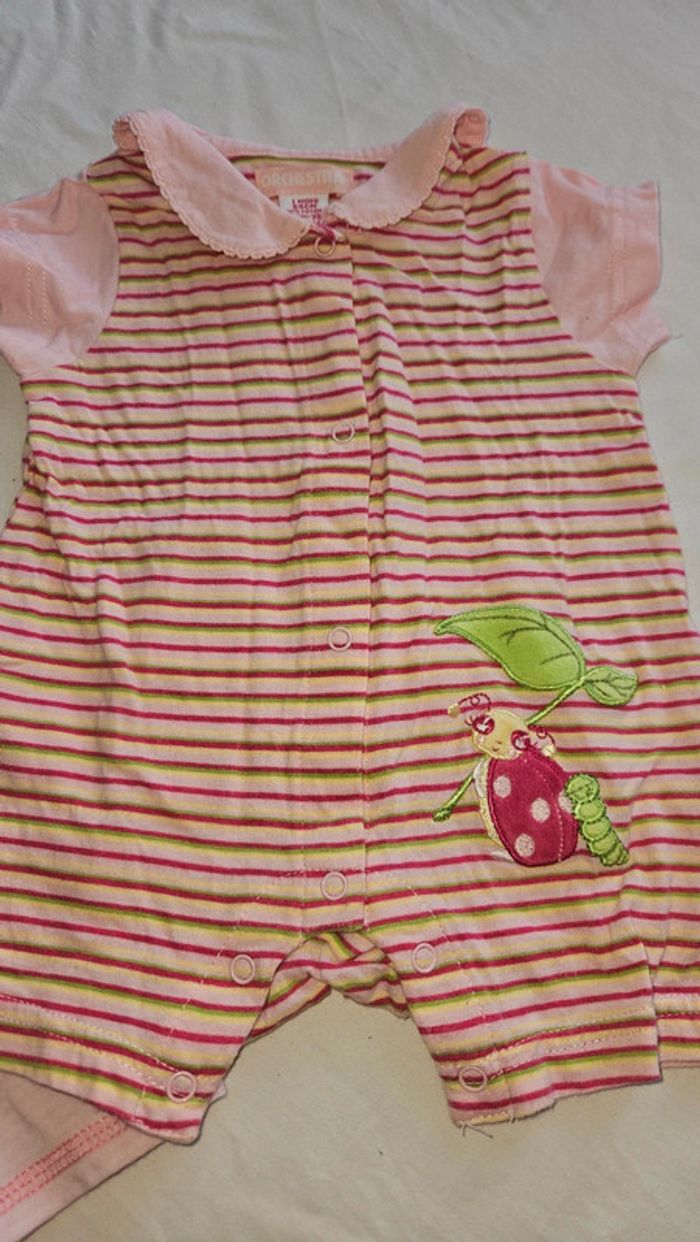 Joli lot composé de : 1 barboteuse rose pâle "Un été tout doux" avec finitions roses (C&A) 1 barboteuse rayée rose, vert et blanc avec col Claudine et broderie coccinelle (Orchestra) Matière : 100 % coton, très doux et agréable à porter #vanessavad1mois #orchestra1mois #barboteuse1moisfille #barboteuse1mois #colclaudine1mois