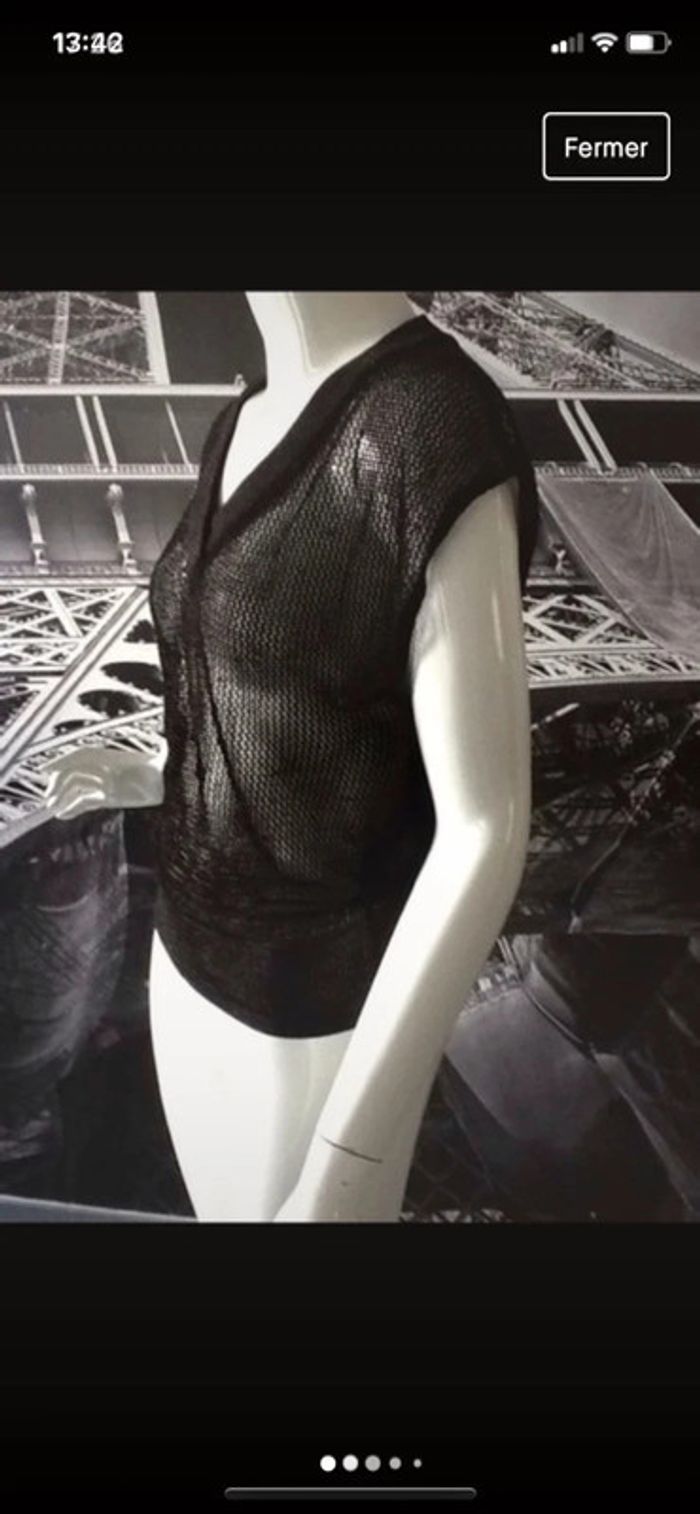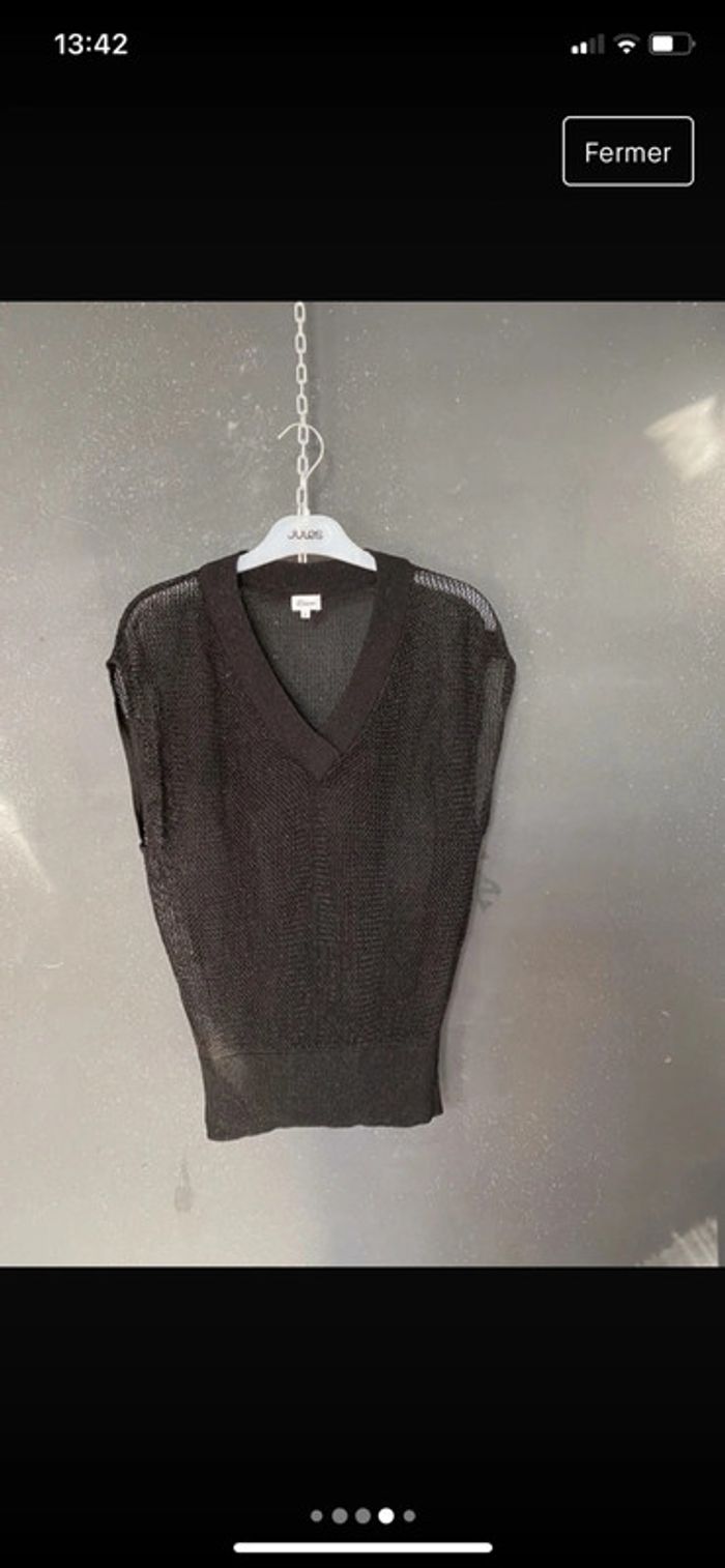 Top débardeur en maille ajourée Noir pailleté Plus d’étiquette pour la matière qui est un peu extensible Épaules tombantes de 46 cms de couture à couture 47 cms sous les aisselles env #top #débardeur #noirpailleté #mailleajourée #etam #fetes #chantalmatejahauts36 #chantalmatejamalo #chantalmateja2023 #chantalmatejatenuedefete