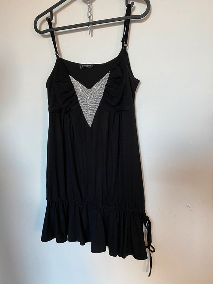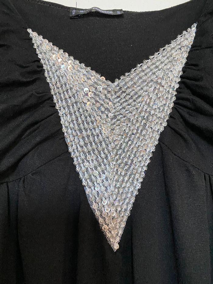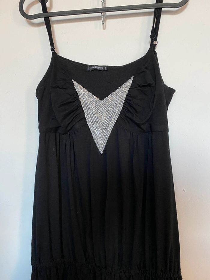 Top long à bretelles noir avec plastron sequins Longueur env 62 en partant du bas de la bretelle Galon de resserage Fabrication en France 🇫🇷 Contient de l’élasthane Taille 38/40 #top #toplong #sequins #sinequanone #vintage #fetes #topabretelles #chantalmatejahauts38 #chantalmatejahauts40 #chantalmatejachris #chantalmateja2023