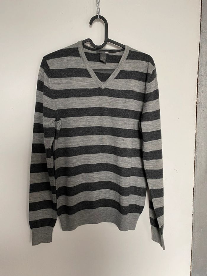 Pull rayé 2 tons de gris 100% mérinos Epaules de couture à couture 38 Sous lés aisselles 44 Hauteur 64 N’hésitez pas à faire un lot pour obtenir une réduction #pullhomme #hetm #mérinos #rayé #gris #chantalmatejapullshommes #chantalmatejadave #chantalmateja2023