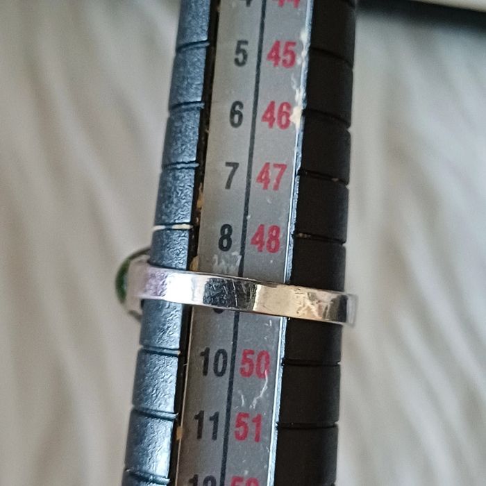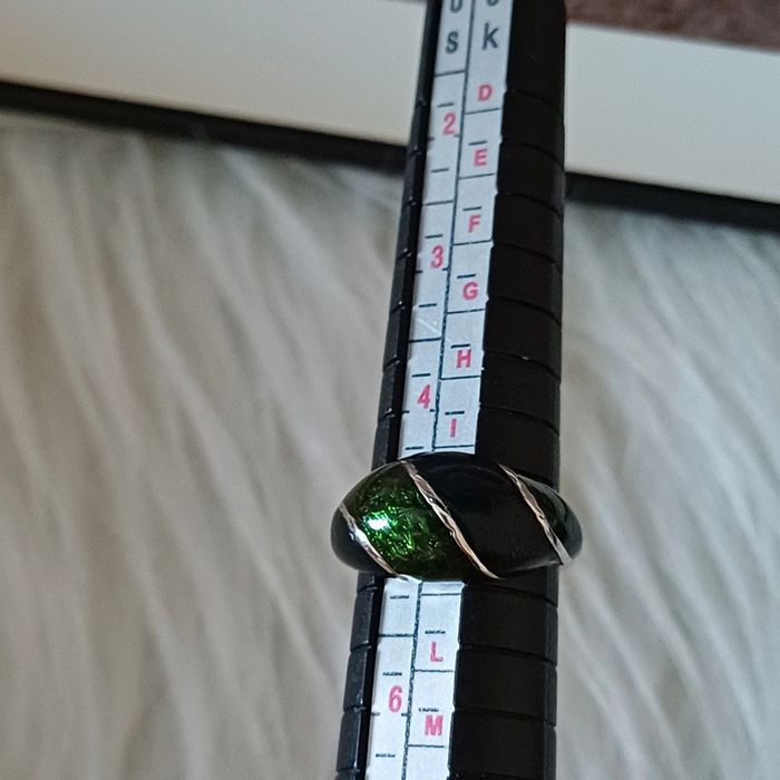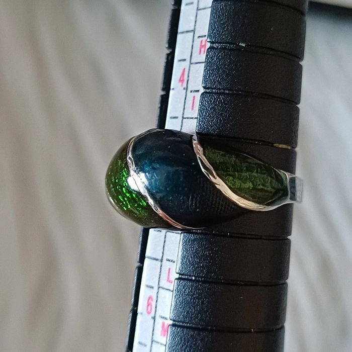 Bague en métal argenté et vert émaillé - photo numéro 6