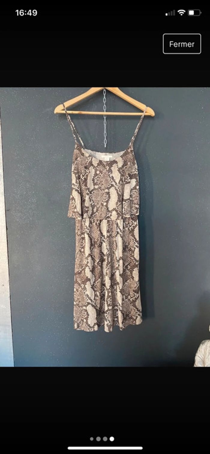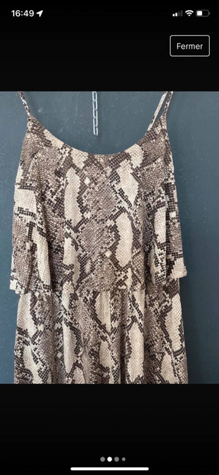 Robe à bretelles avec plastron devant et plus petit derrière Motif python Longueur env 92 #robeàbretelles #python #plastron #hetm #été #misaison #chantalmatejarobes38 #chantalmatejachame #chantalmateja2023