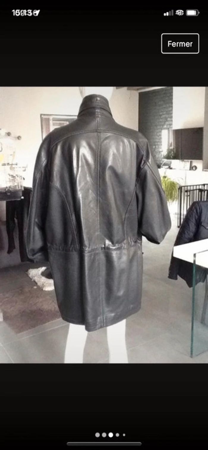 Veste longue vintage 80s cuir d’agneau pleine fleur pigmentée - photo numéro 3