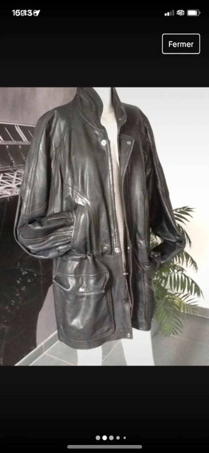 Veste longue vintage 80s cuir d’agneau pleine fleur pigmentée - photo numéro 2