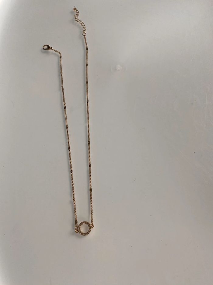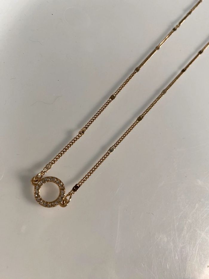 Collier métal doré chaîne à détail et cercle à brillants - photo numéro 1