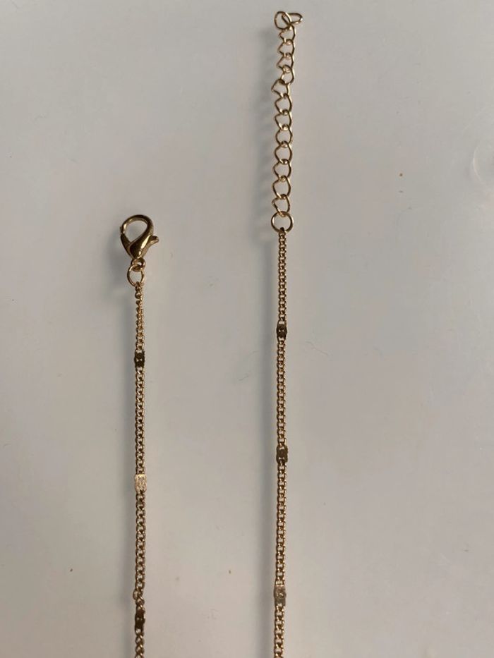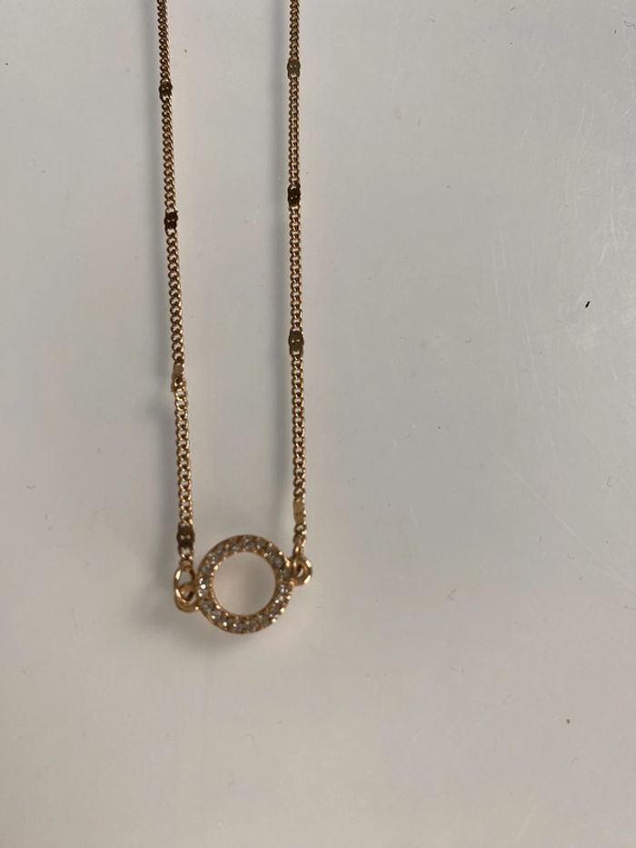 Prix ferme Collier en métal doré dont la chaîne est à détail Des brillants dans le motif en cercle Article neuf non porté Longueur 20 cms #collierfemme #chaine #brillants #metaldoré #acierinoxydable #bijoux #chantalmatejabijoux #chantalmatejachame #chantalmateja2023