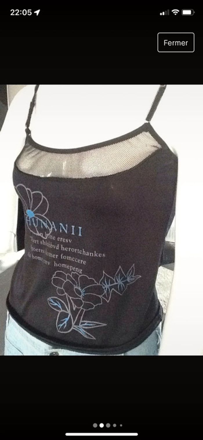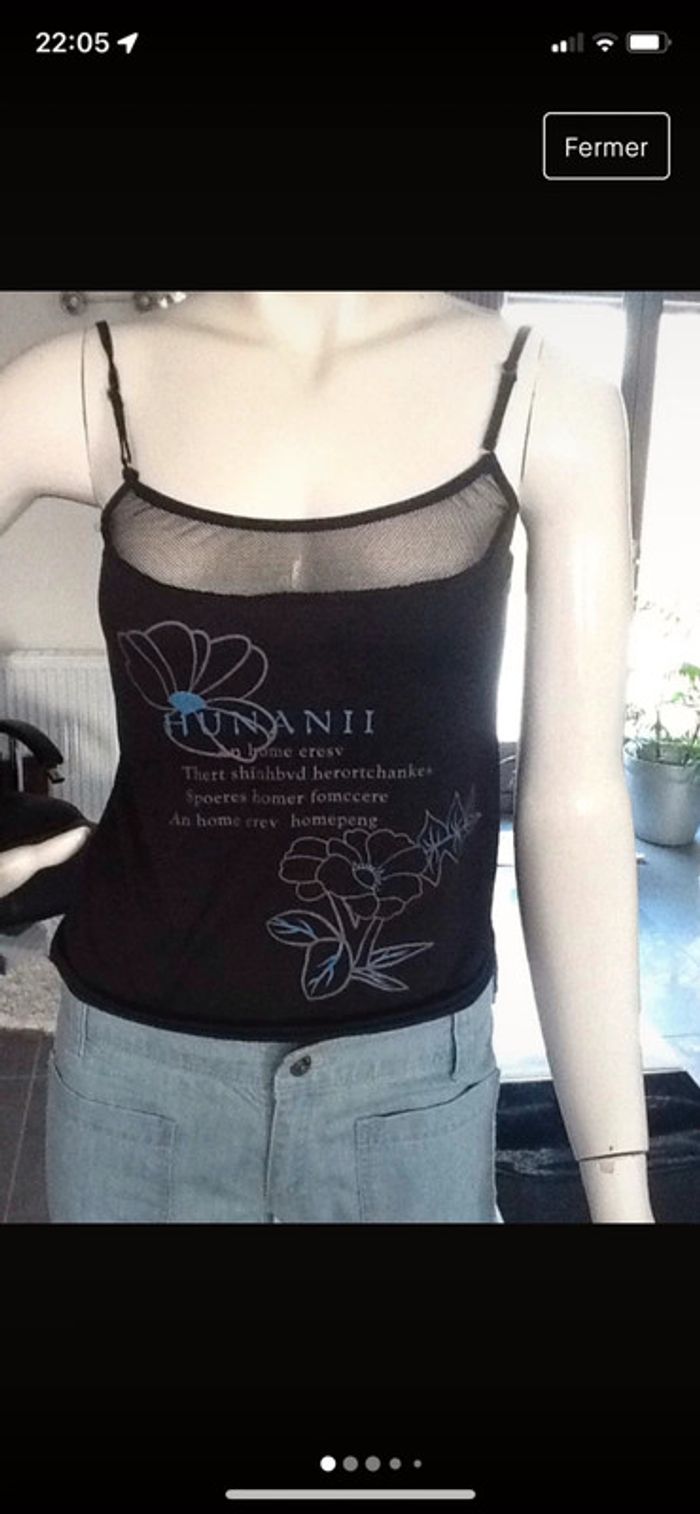 Top débardeur à fines bretelles Encolure résille 80% nylon 15% spandex 5% coton #top #débardeur #resille #athypique #chantalmatejahauts38 #chantalmatejamalo #chantalmateja2023