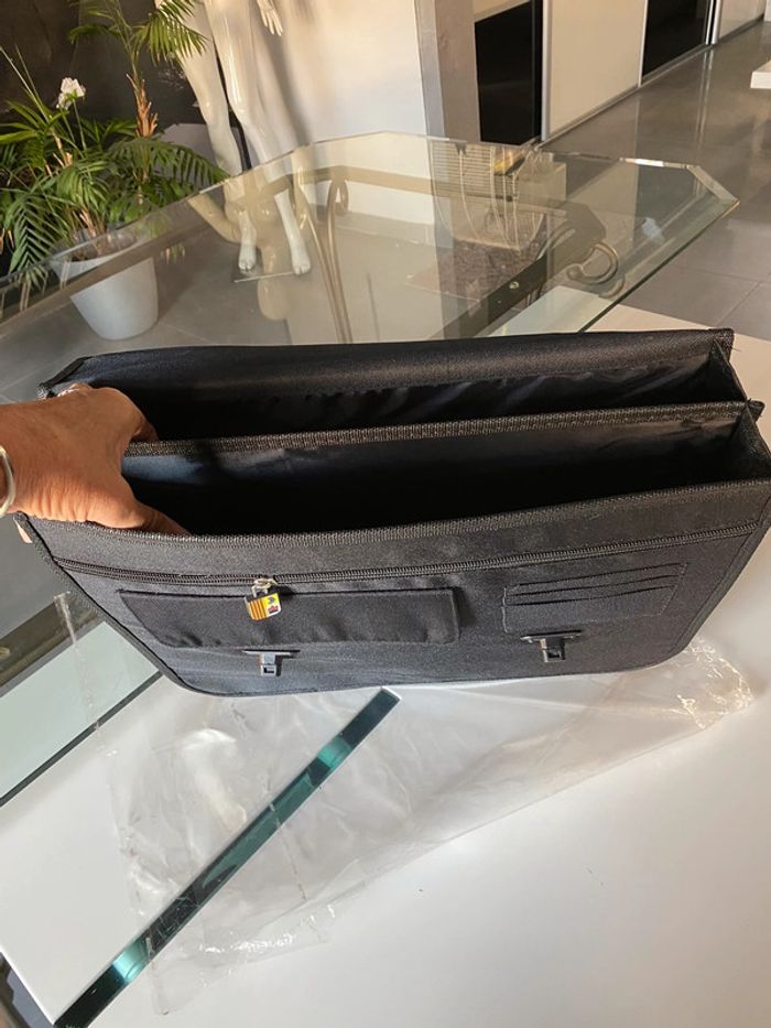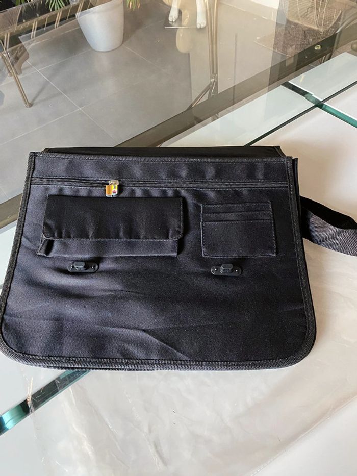 Sacoche cartable porte ordinateur porte documents 2 compartiments Poignée et bandoulière En toile rigide 38 sur 29 soufflet de 9 cms Devant une poche à fermeture éclair + pochettes de rangement stylo et cartes Au dos une poche à fermeture éclair Inscription région Auvergne Alpes Côte d’Azur encore protégé par un film #sacoche #cartable #portedocuments #porteordinateur #bandoulière #neuf #emballé #noir #étudiant #homme #vrp #chantalmatejaportedocuments #chantalmatejachame #chantalmateja2023