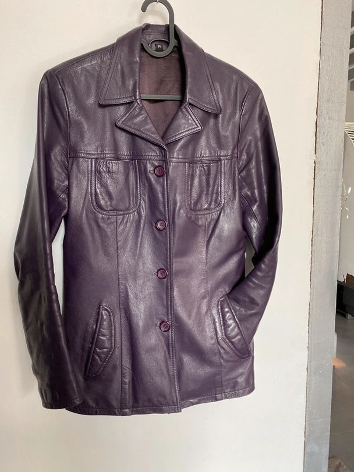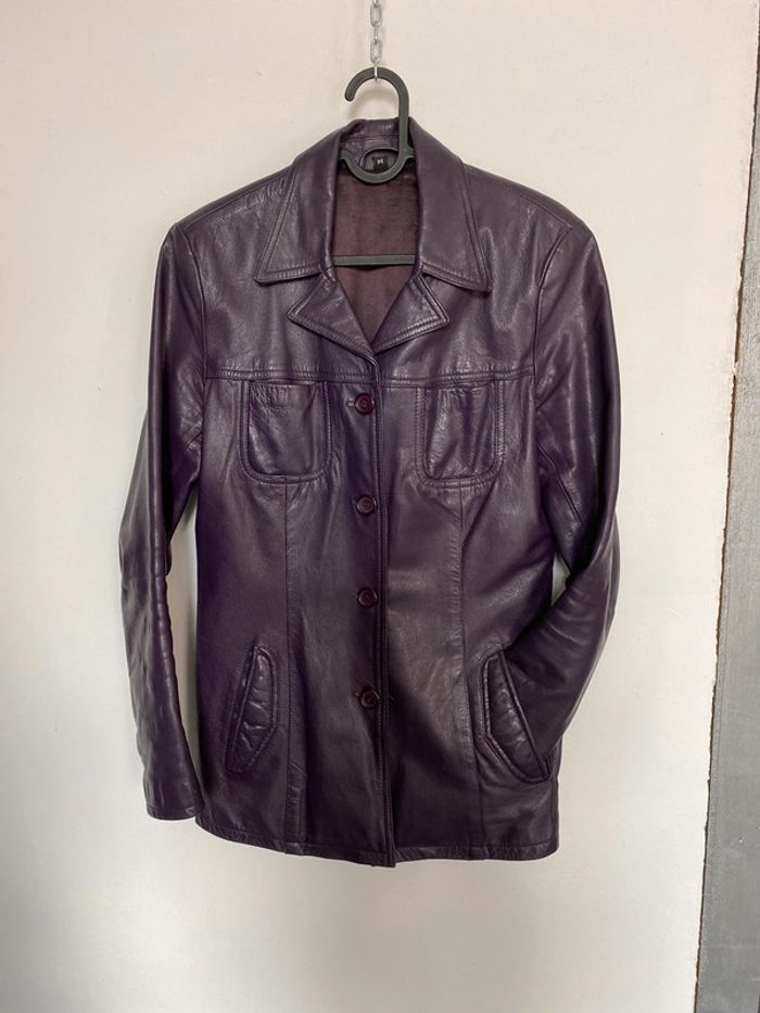 Veste longue violet 100% cuir de chèvre - photo numéro 1