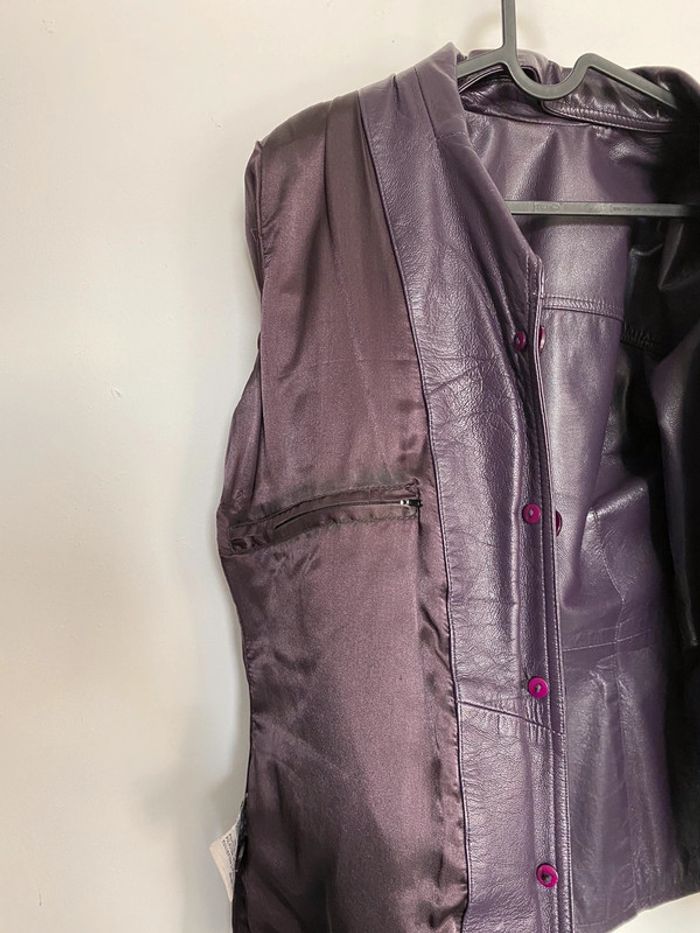 Veste longue violet 100% cuir de chèvre - photo numéro 7