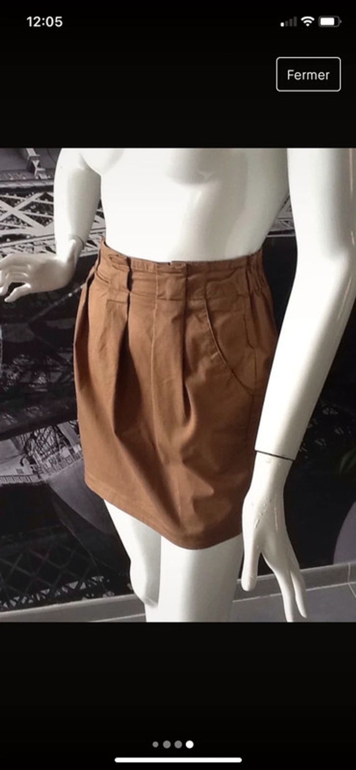 Jupe courte avec plis devant et poche sur les côtés Mélange coton et polyester Longueur 39 cms #minijupe #jupecourte #marron #camel #tradivarius #chantalmatejajupes36 #chantalmatejamalo #chantalmateja2023