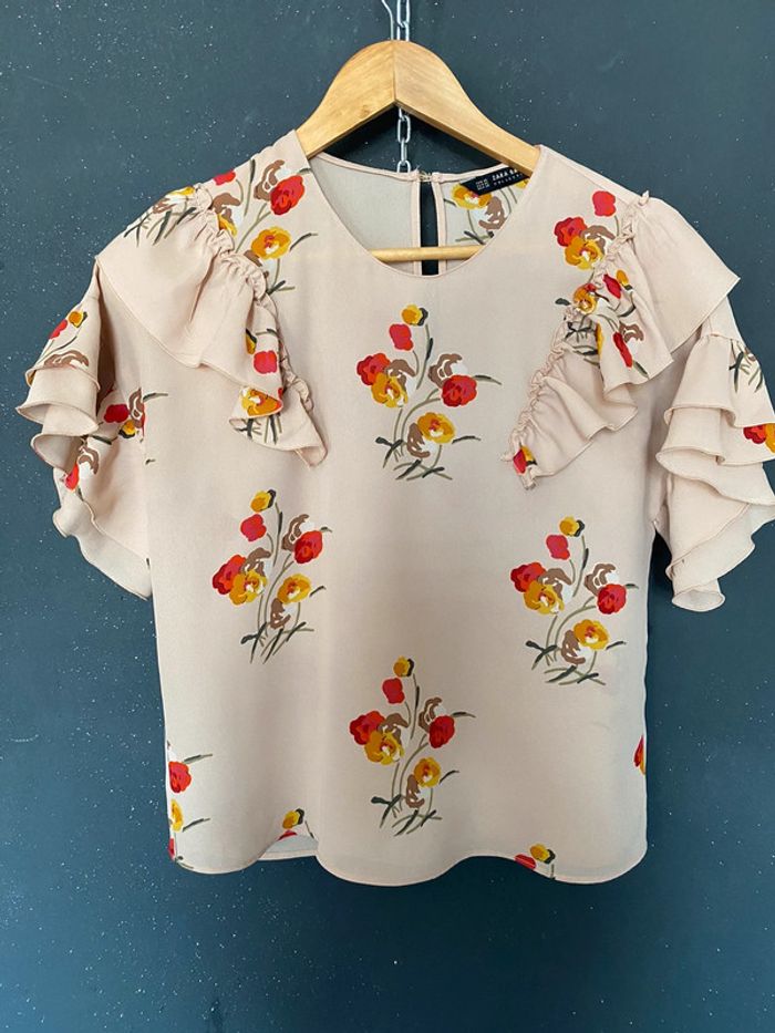 Blouse fluide à motifs et volants Xs #blouse #fluide #zara #xs #tresbonetat #légère #chantalmatejahauts34 #chantalmatejamalo #chantalmateja2023