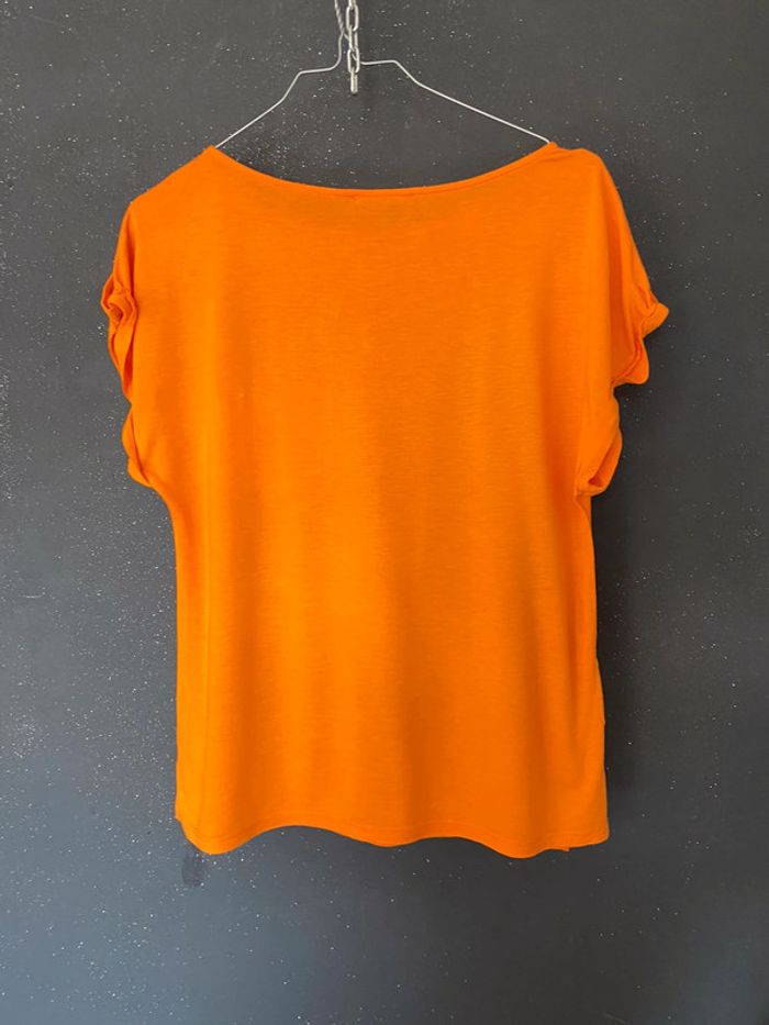 Teeshirt blouse orange bi matière - photo numéro 4