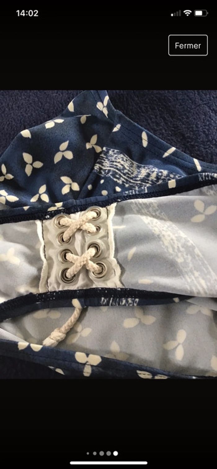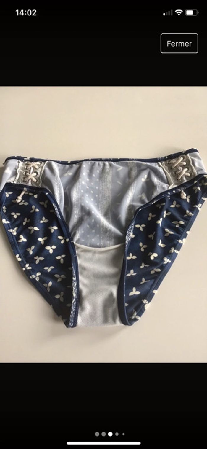 Bas de maillot de bain Culotte de bain Marie et blanc cassé Noeud sur les côtés uniquement en détails ils ne resserrent pas le maillot de bain 80% polyamide 20% elasthane Taille France Belgique Portugal Espagne 40 Allemagne 38 #maillotdebain #culottedebain #taillehaute #basdemailllotdebain #vintage #marine #details #chantalmatejamaillotsdebains #chantalmatejachame #chantalmateja2023