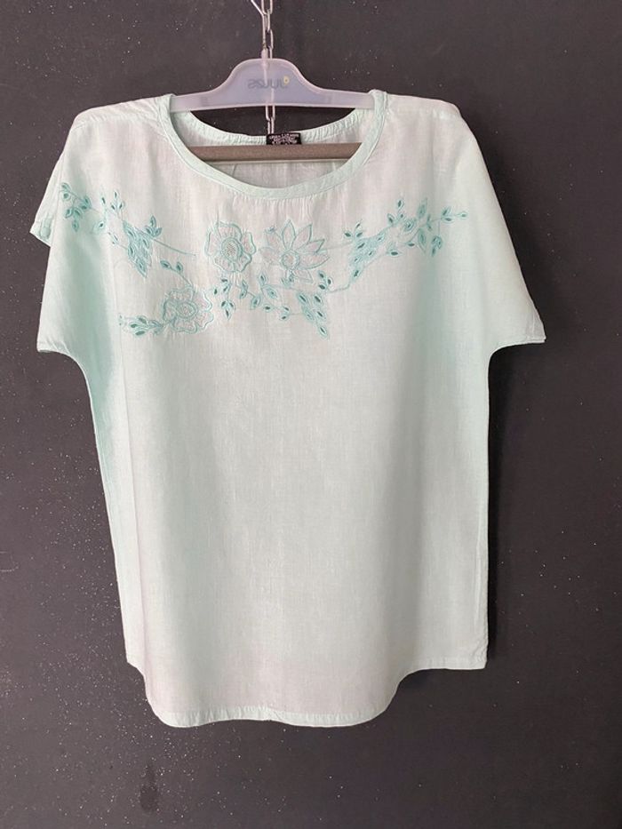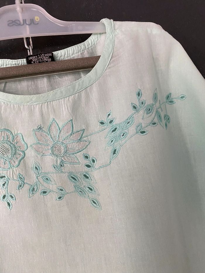 Blouse vert d’eau brodée - photo numéro 1