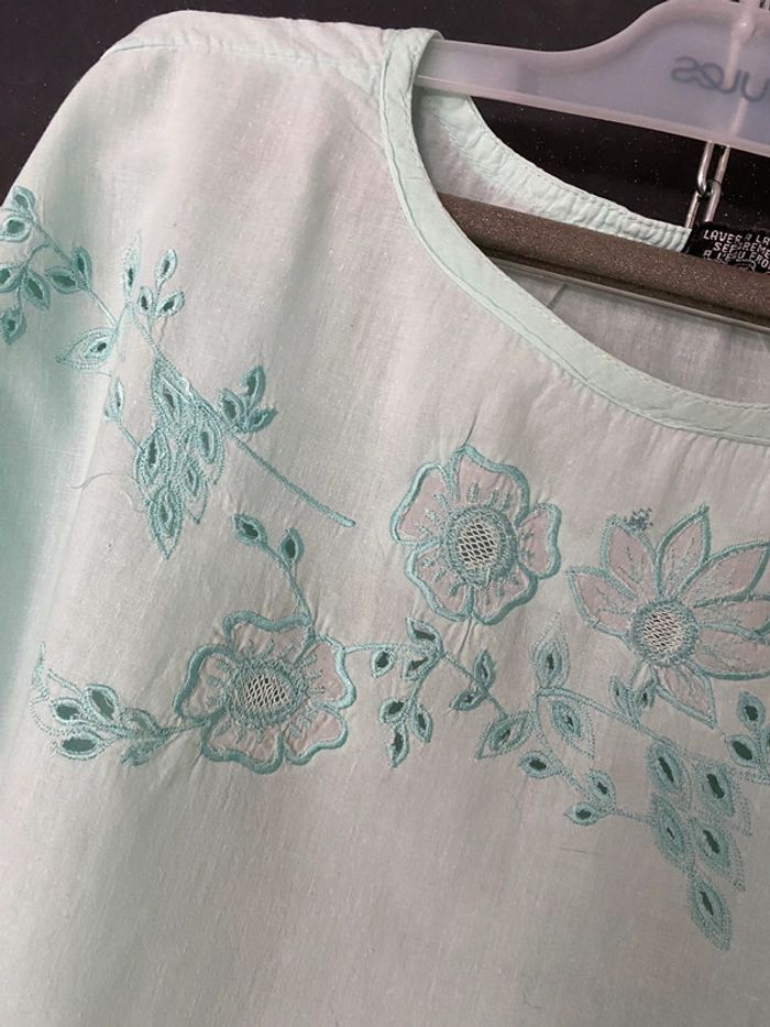 Blouse vert d’eau brodée - photo numéro 5