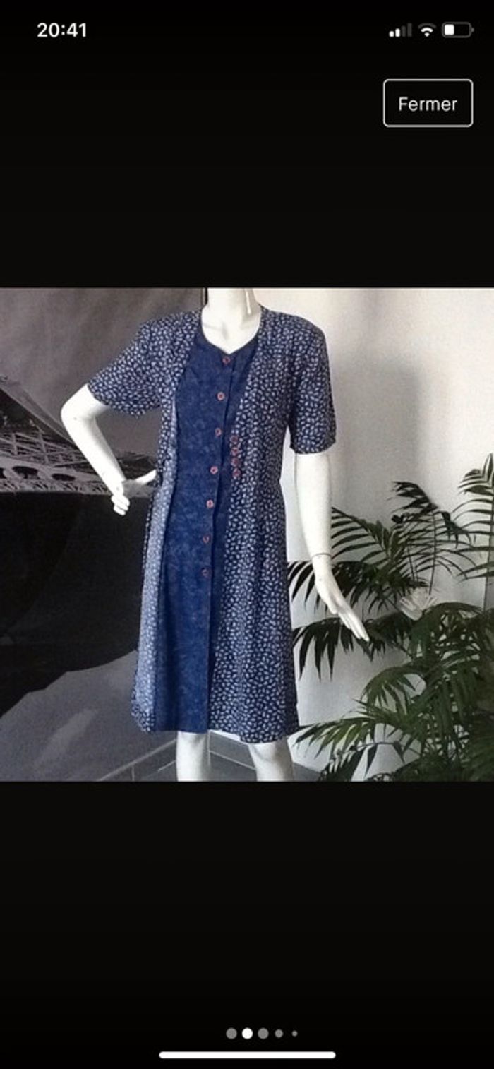 Robe vintage bleue 90s Semble en coton Très originale avec son double boutonnage Epaules de couture à couture 43 cms Sous les aisselles 52 cms Taille a plat (ne s’étire pas) 47 cms Longueur en partant du milieu d’épaule 99 cms Merci de vérifier les mensurations afin d’éviter toute déception #robevintage #florelladiverdi #originale #athypique #vintage #90s #chantalmatejarobes42 #chantalmatejachame #chantalmateja2023