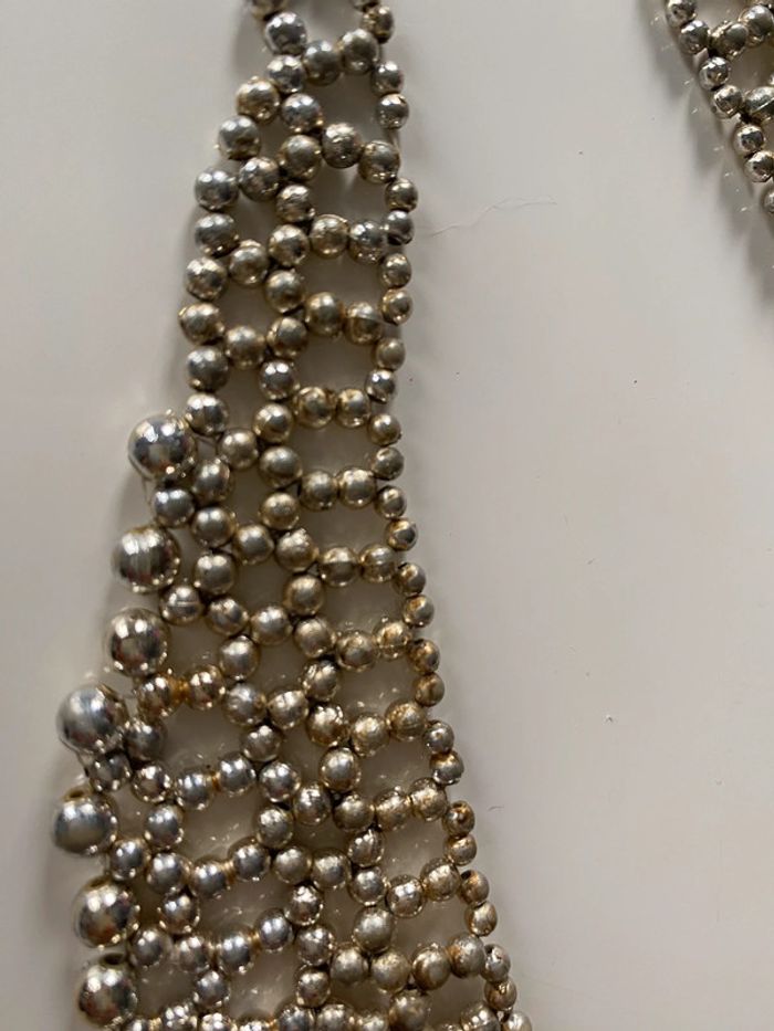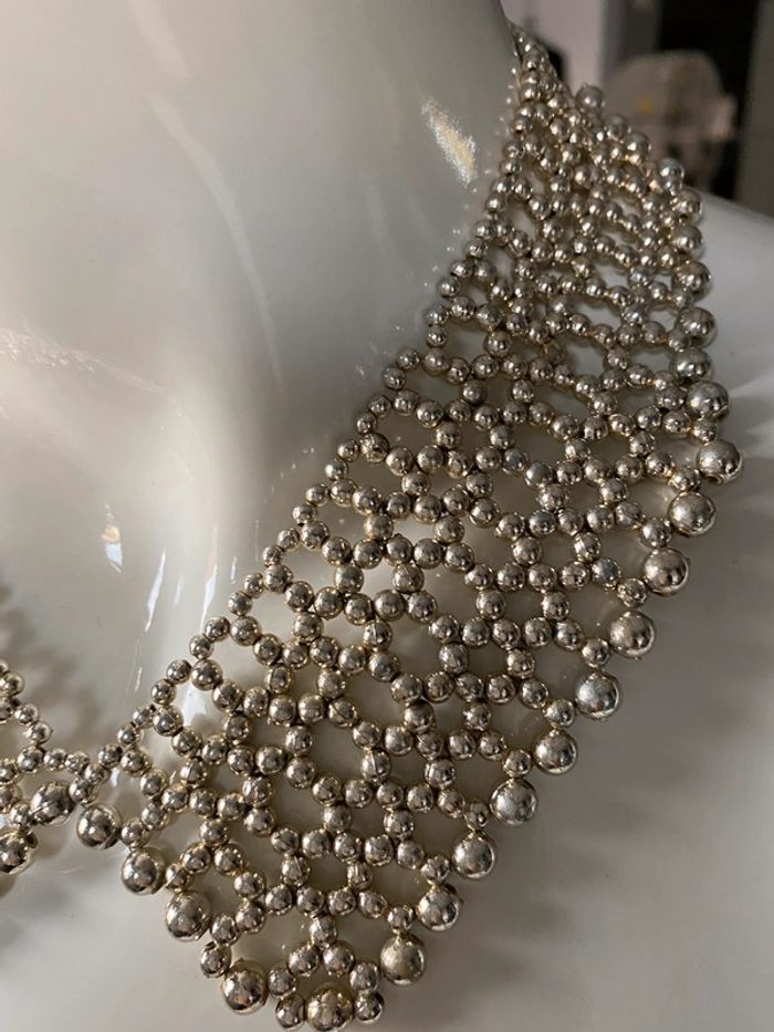 Collier fantaisie en forme de col Claudine Composé d’un ensemble de perles dorées clair Très légèrement estompé à un endroit dessous cf dernière photo #collier #fantaisie #colclaudine #perles #doré #chic #athypique #chantalmatejabijoux #chantalmatejamalo #chantalmateja2022