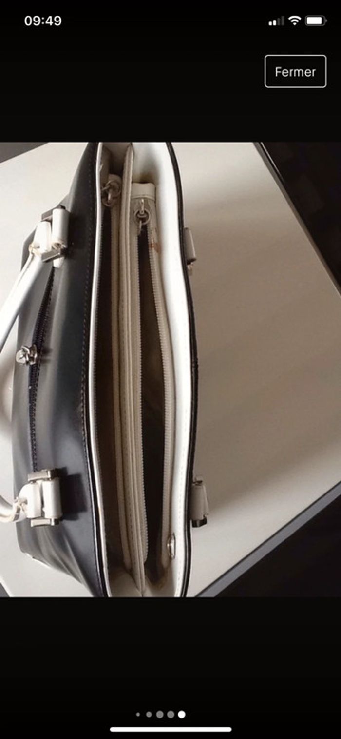 Sac à main noir et blanc Hauteur 25 cms Fond de 10 cms sur 28 de largeur Une petite tache sur la fermeture éclair d’une des poches de rangement Sac a 2 compartiments avec poche intérieure Une piche à fermeture éclair à l’extérieur au verso du sac Deux ou trois traces de styli sur la doublure qui est malgré tout en très bon etat #sacàmain #vintage #noiretblanc #chantalmatejasacsamain #chantalmatejachame #chantalmateja2022