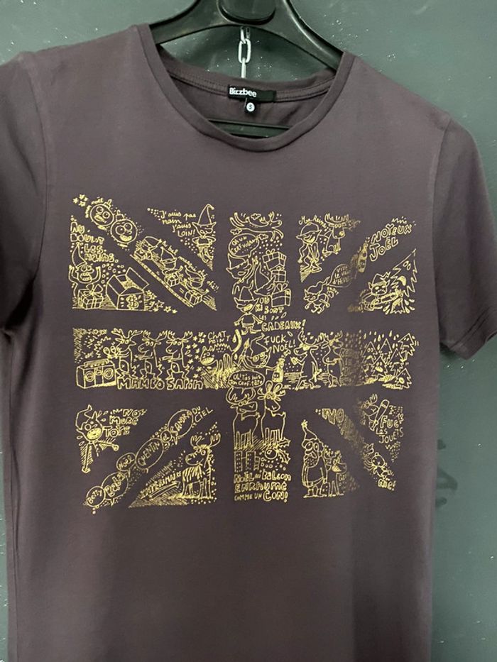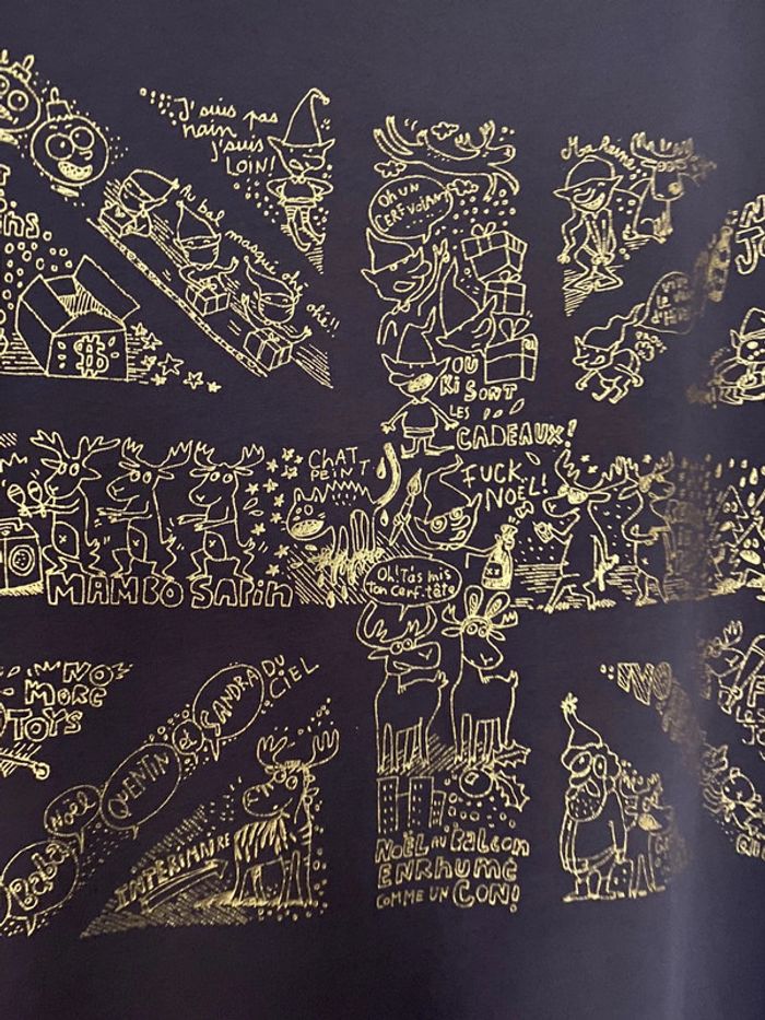 Teeshirt de Noël violet à motifs dorés Pour la couleur se fier aux deux premières photos 100% coton #teeshirt #bizzbee #noel #violet #doré #tailles #chantalmatejateeshirthommes #chantalmatejadave #chantalmateja2022