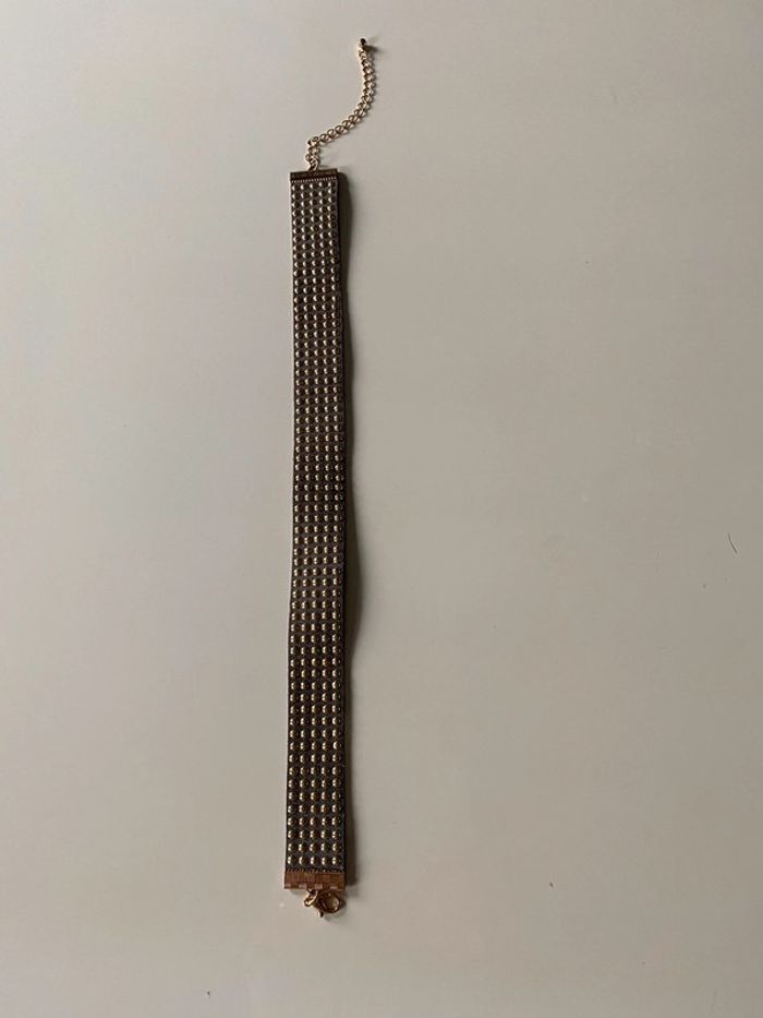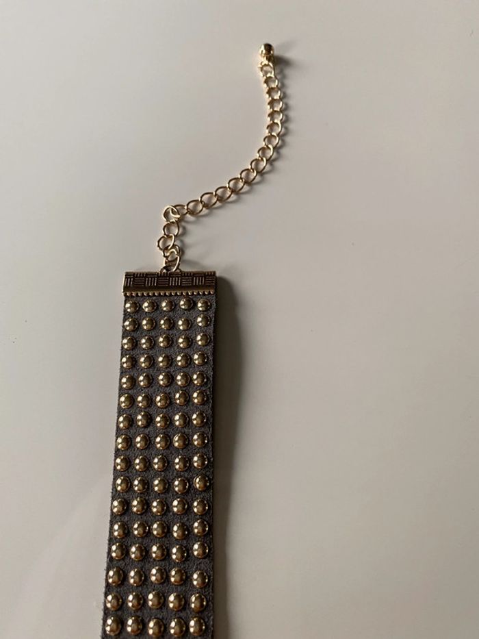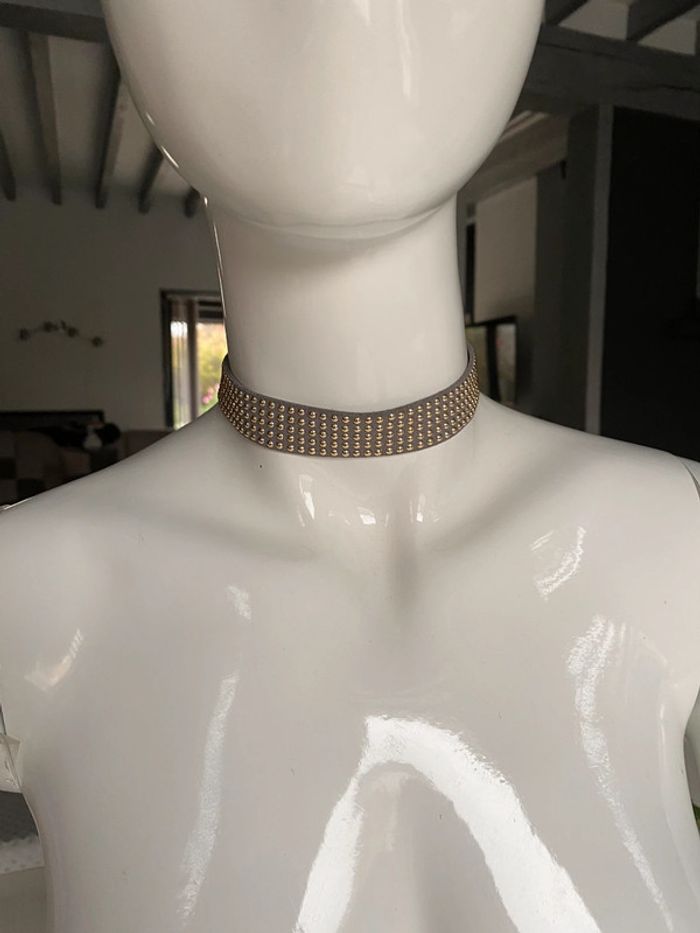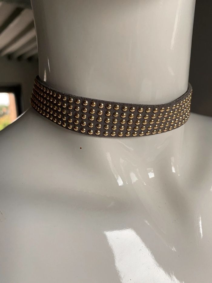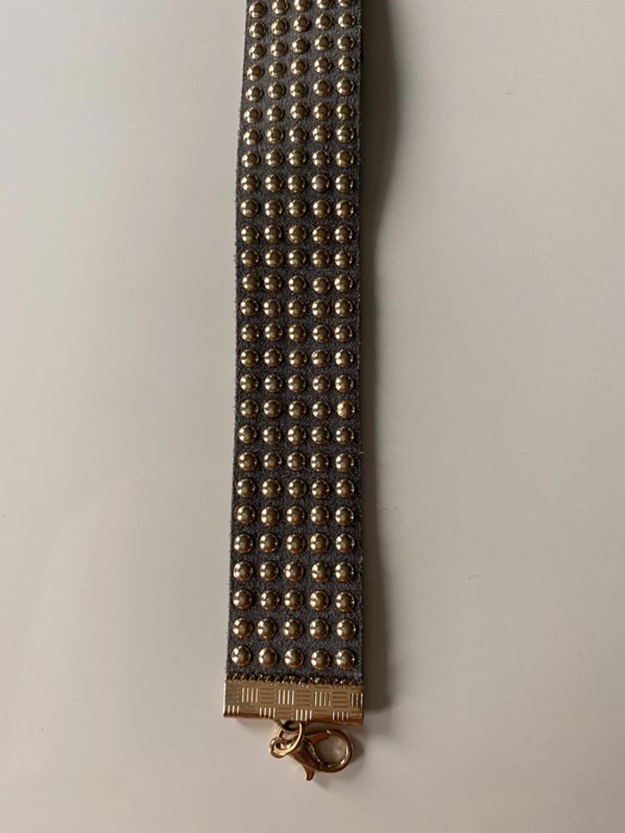 Prix ferme Collier de chien motifs dorés sur lanière grise Tour de cou maximal 36 cms Largeur 2 cms #collierdechien #motifs #doré #fantaisie #fetes #chantalmatejabijoux #chantalmateja2022 #chantalmatejamalo