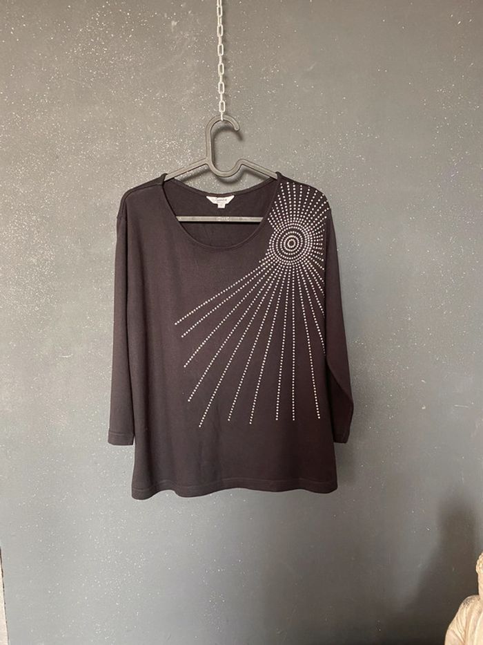 Haut noir viscose et elasthane à motif argenté - photo numéro 1