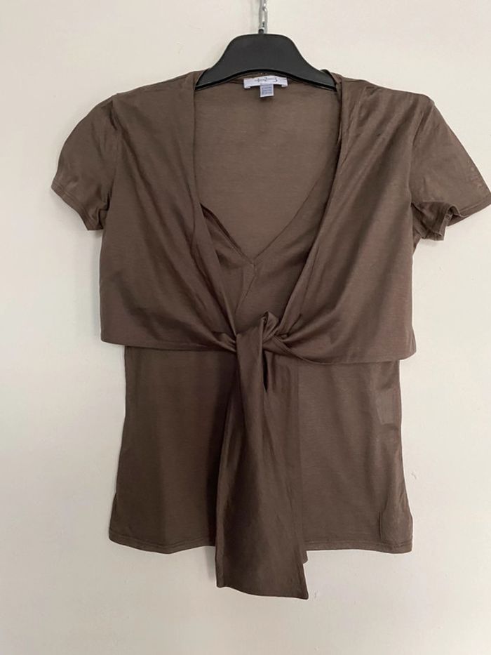 Prix ferme !! Merci Haut forme teeshirt avec cache cœur à nouer En coton très fin cet article est chic Couleur un peu marron glacé légèrement luisant Taille 34/36 Jamais porté (mais lavé pour la mise en ligne) #hautchic #cachecoeur #marronglacé #marronclair #123 #neuf #athypique #chic #habillé #ceremonie #occasion #chantalmatejahauts34 #chantalmatejahauts36 #chantalmateja2022 #chantalmatejamalo