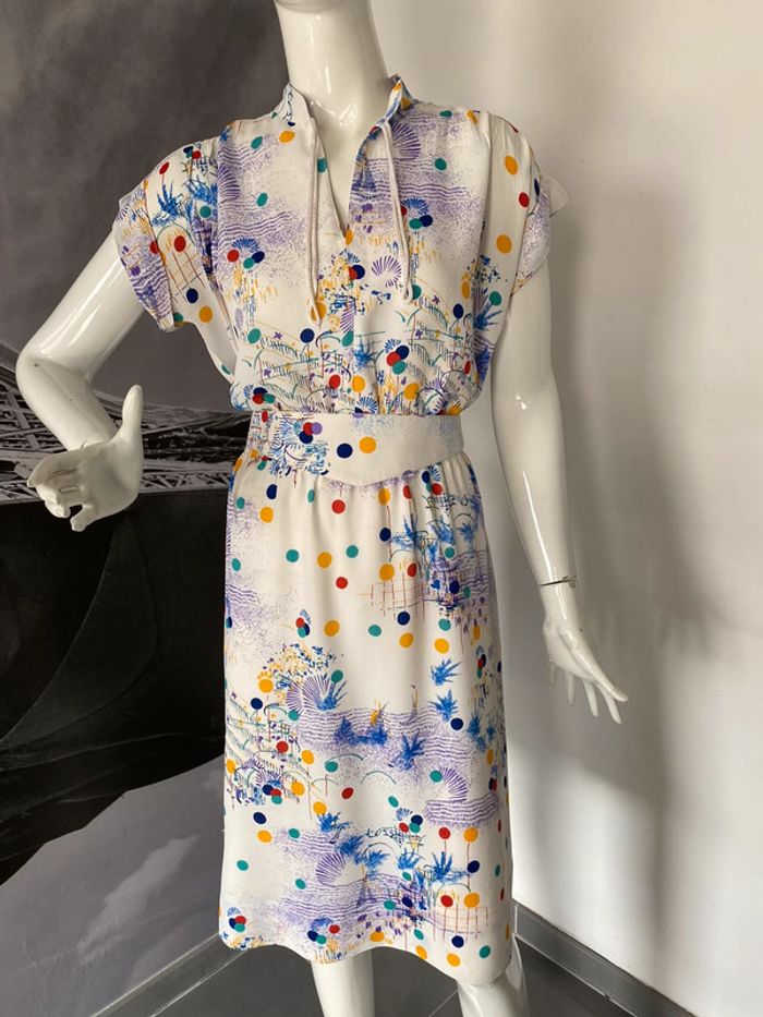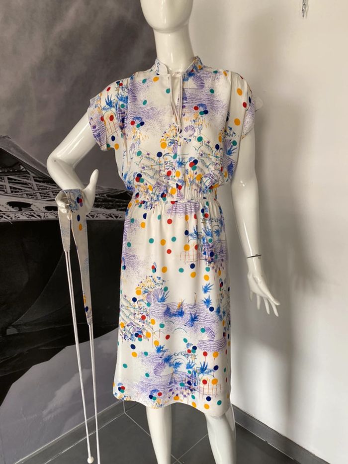 Robe très athypique avec ceinture à nouer Le haut à une forme blousante avec élastiques à la taille Poche sur le côté La doublure a été recousu et une maille stoppée #robe #vintage #ceinture #athypique #légère #été #chantalmatejarobes38 #chantalmateja2022 #chantalmatejachame