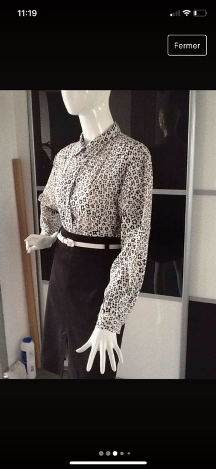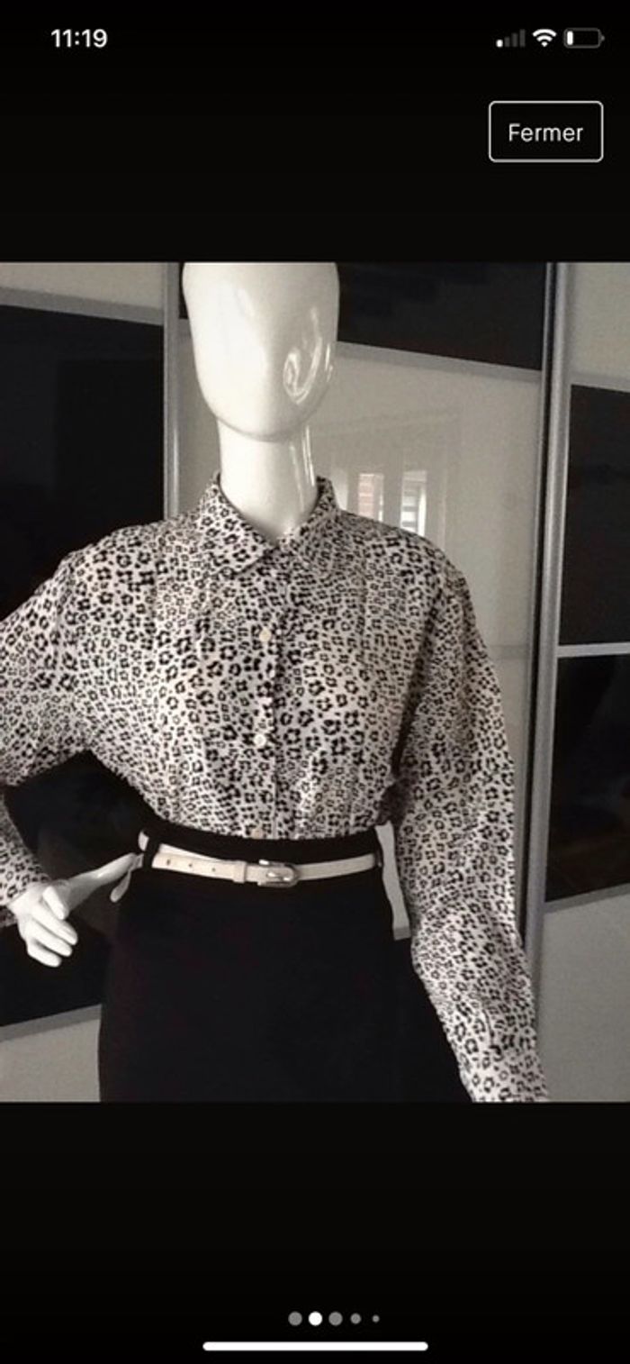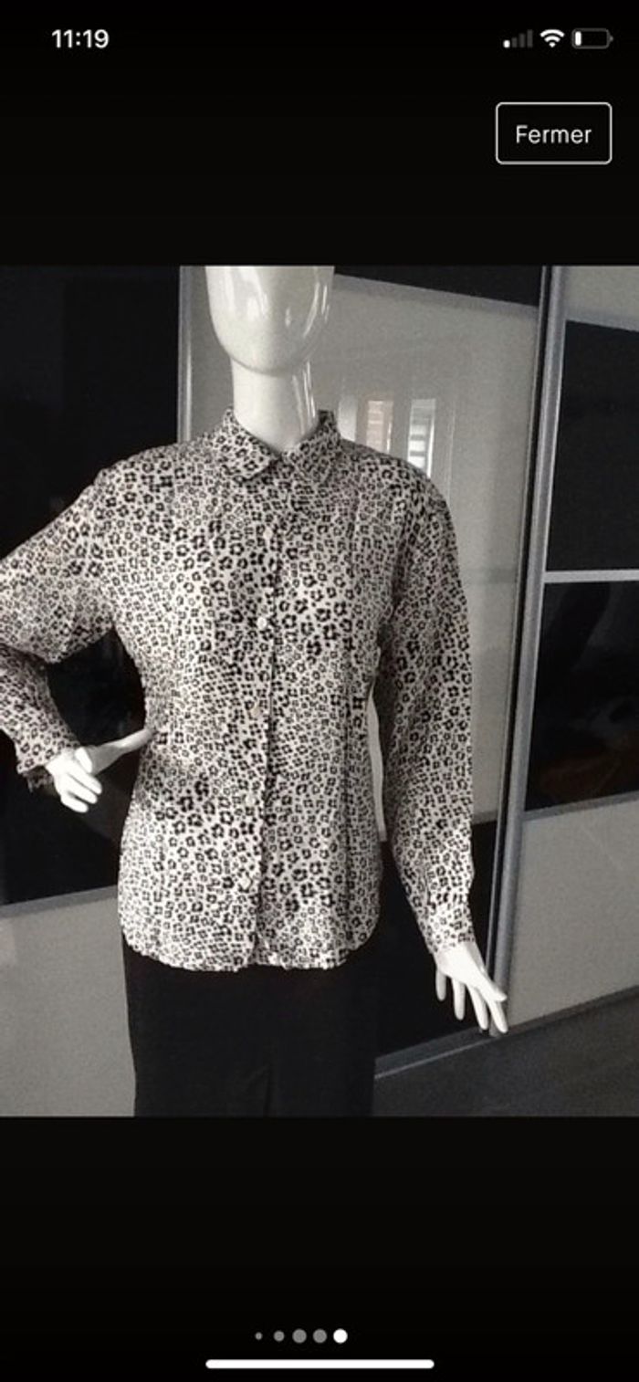Chemisier vintage à motifs noir sur blanc Taille vintage 3 Convient a 40/42 Epaules de couture à couture 43 Sous les aisselles 49/50 Étiquette illisible pour la matière qui est douce et soyeuse au toucher Origine Miss Helen Forme liquette dans le bas #chemisier #vintage #misshelen #noiretblanc #liquette #femme #soyeux #doux #chantalmatejachemisiers40 #chantalmatejachemisiers38 #chantalmateja2022 #chantalmatejachame
