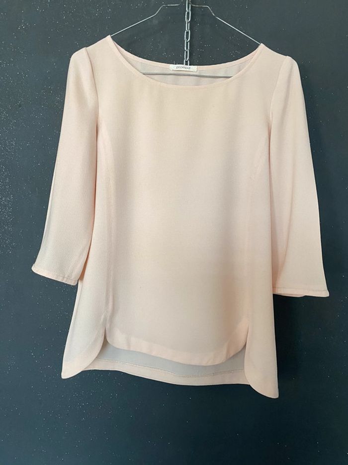 Blouse rose pâle #découpe dans le bas et aux manches Matière légère (plus d’étiquette) polyester à mon avis #blouse #légère #rose #poudre #clair #promod #chantalmateja2022 #chantalmatejahauts36 #chantalmatejamalo