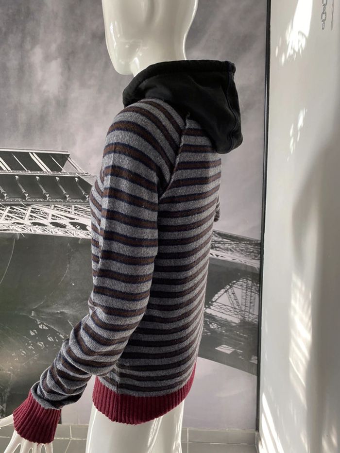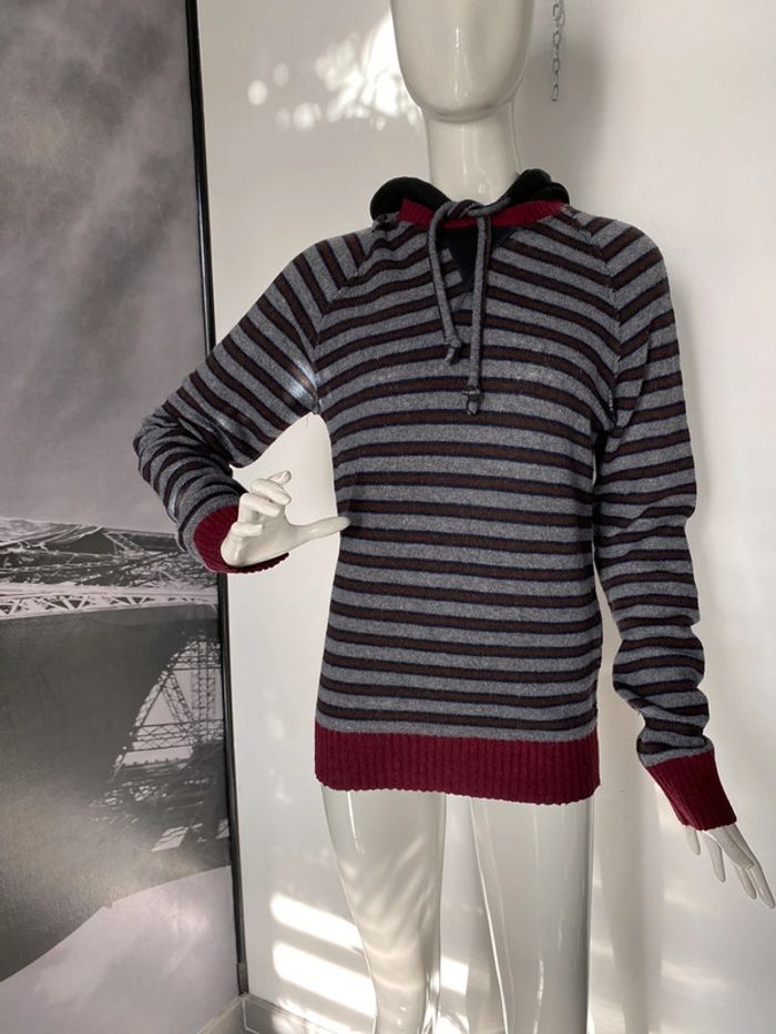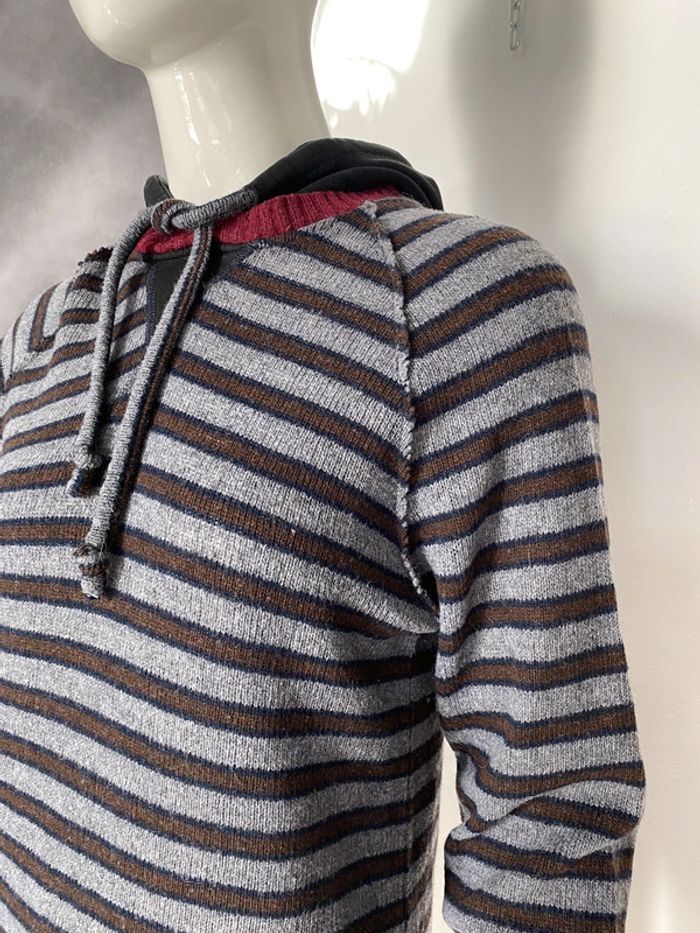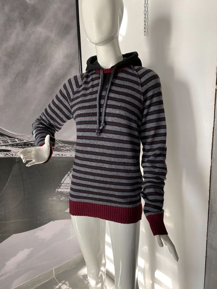 Pull rayé gris bordeaux Article ancien de bizzbee 80% laine 20% polyamide Capuche 95% coton et 5% lycra #pullacapuche #homme #ado #laine #bizzbee #chantalmatejapullhommes #chantalmatejapullshomme #chantalmateja2022 #chantalmatejadave