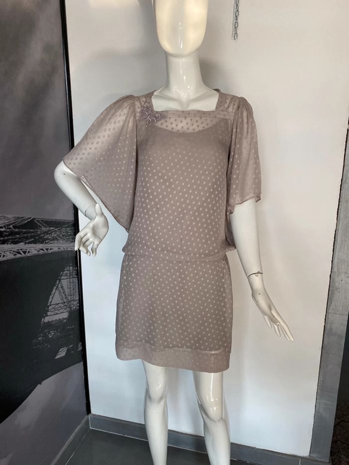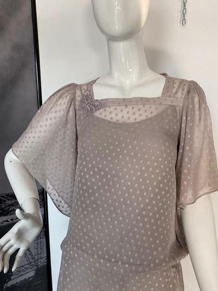 robe en voile e plumetis motif papillon brodé couleur beige vieux rose petits fils à certains plumetis cependant encore en très bon état pas ´étiquette porta matière mais il me semble qu’il y a de la soie + fond de robe à bretelles réglables #chantalmateja2022 #robe #fondderobe #123 #ceremonie #été #athypique #papillon #chantalmatejarobes36 #chantalmatejamalo