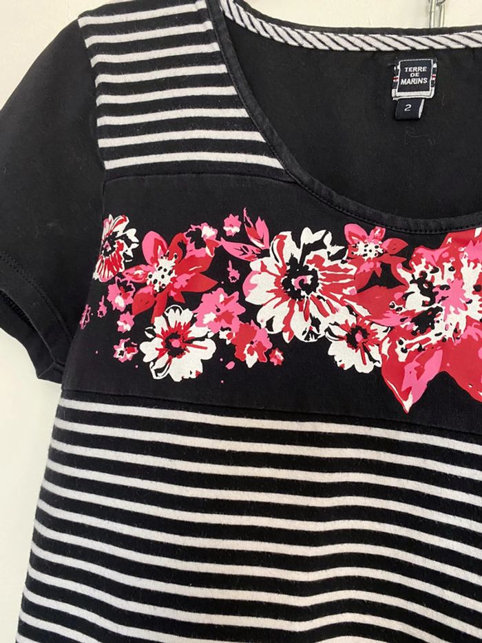 Teeshirt rayé et motifs fleurs - photo numéro 2