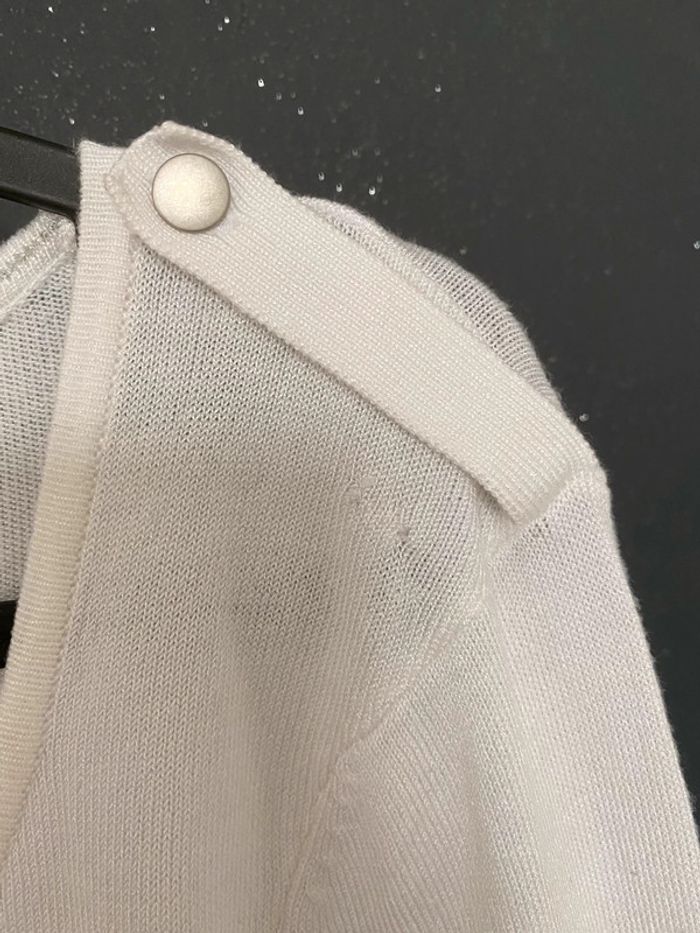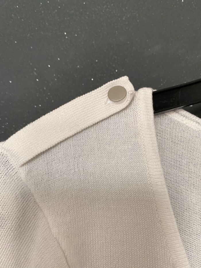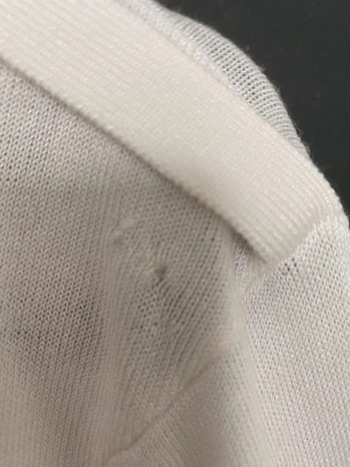 pull fin col en V rayé marine et blanc plus d’étiquette pour la matière qui a mon avis est acrylique !! 2 mailles rattrapées au niveau de l’épaule (trou fait par l étiquette du prix d’achat) voir détail sur dernières photos #chantalmateja2022 #pull #pullfin #femme #mim #marinière #marineetblanc #chantalmatejapullsfemme