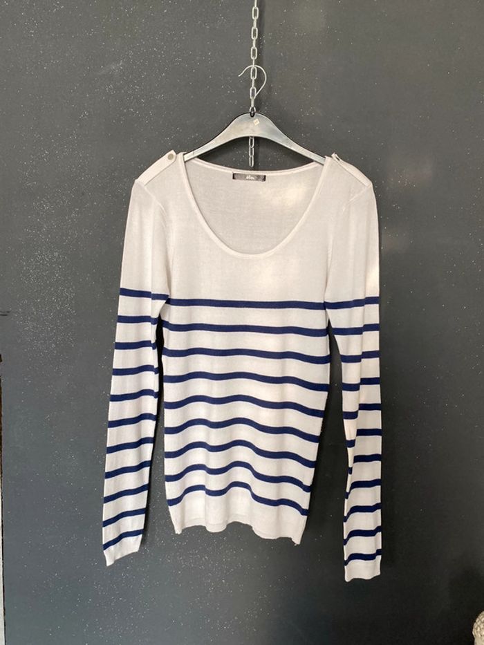 Pull fin rayé marine et blanc - photo numéro 1